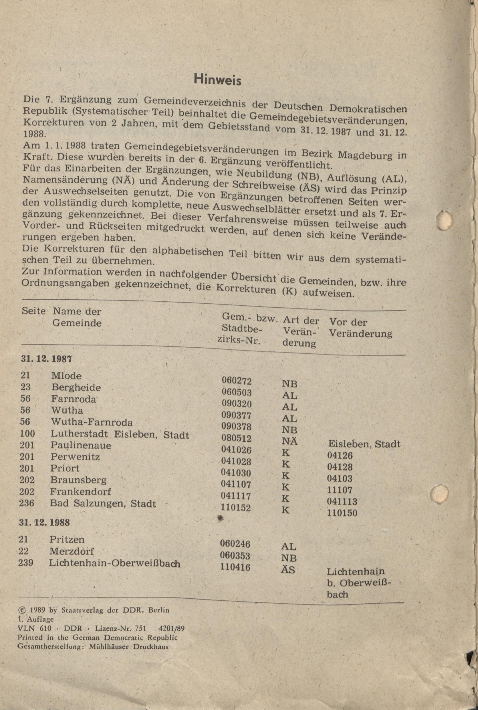- [Abschnitt] Übersicht der Gemeinden der Deutschen Demokratischen ... 7