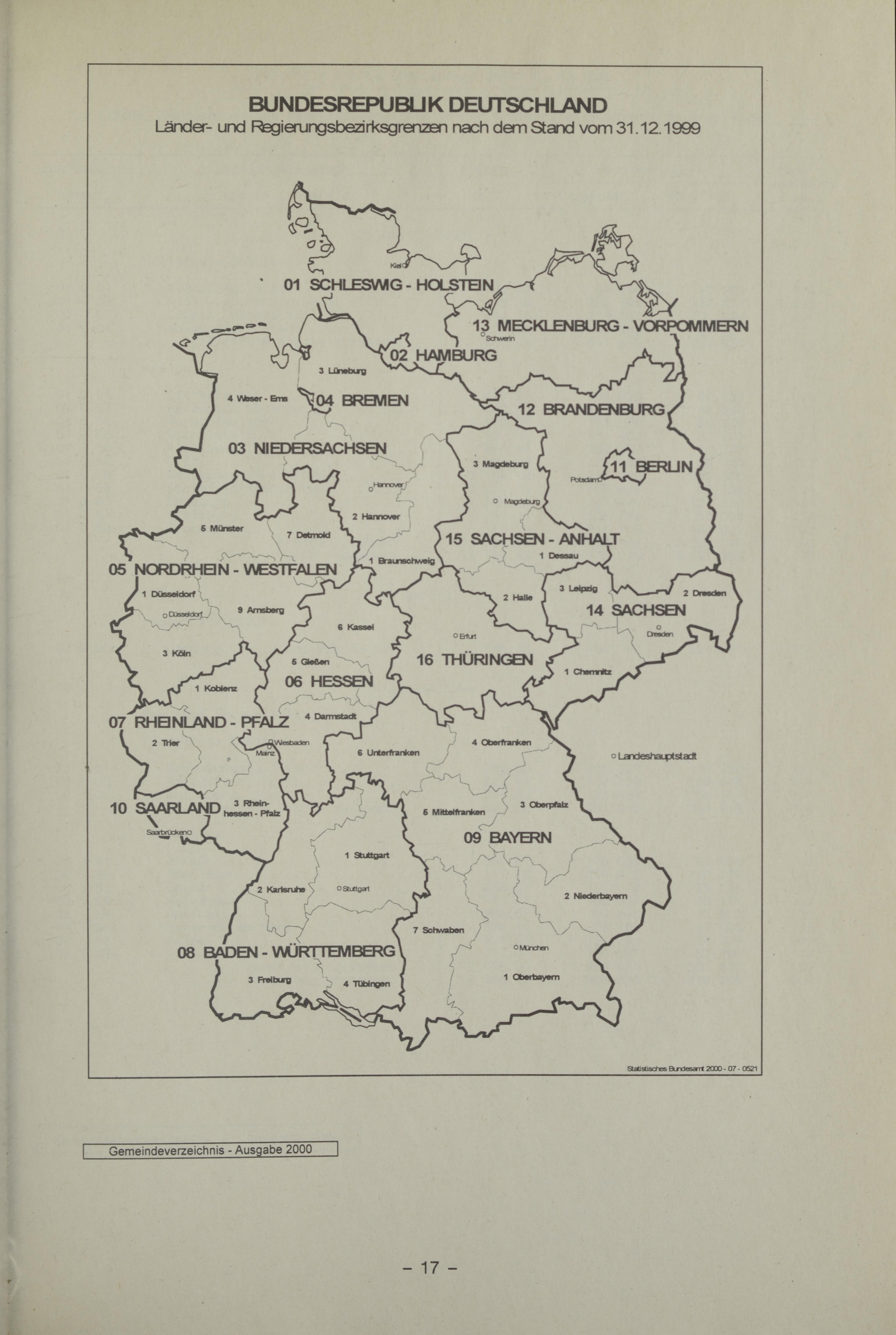 - [Abschnitt] Verwaltungsgliederung des Bundesgebietes am 31.12.1999 14