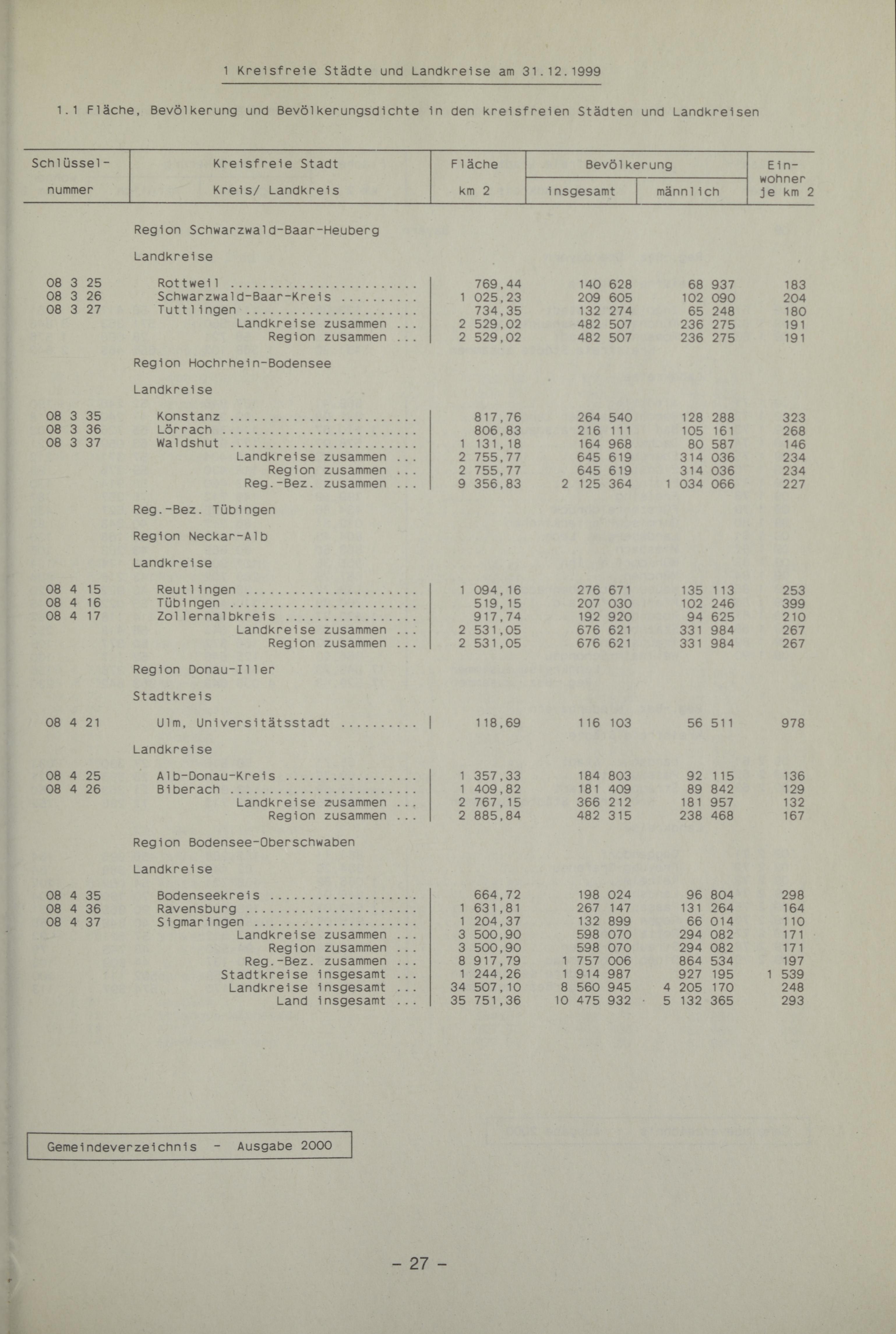 - [Abschnitt] 1 Kreisfreie Städte und Landkreise am 31.12.1999 19
