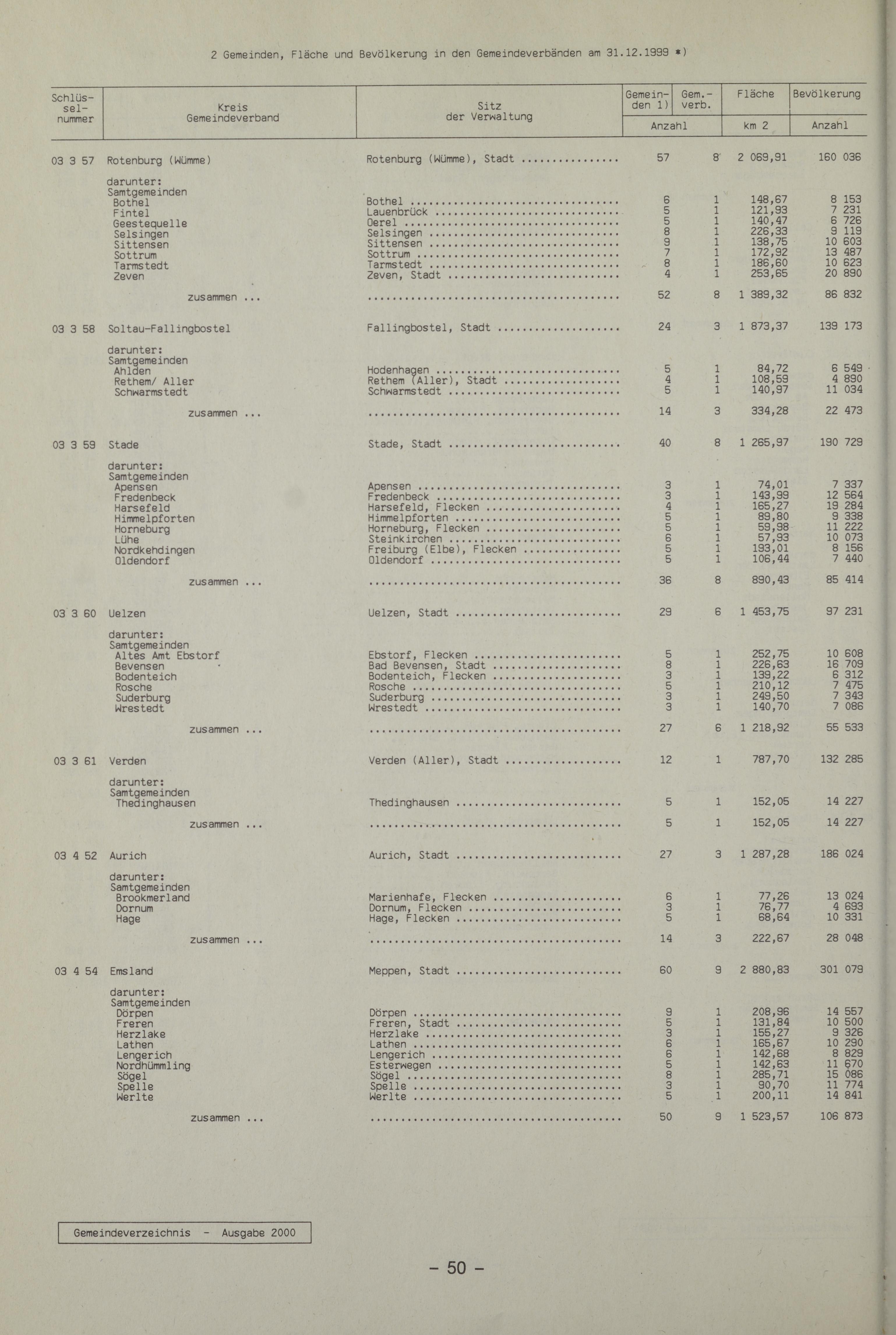 - 2 Gemeinden, Fläche und Bevölkerung in den Gemeindeverbänden am 31.12.1999