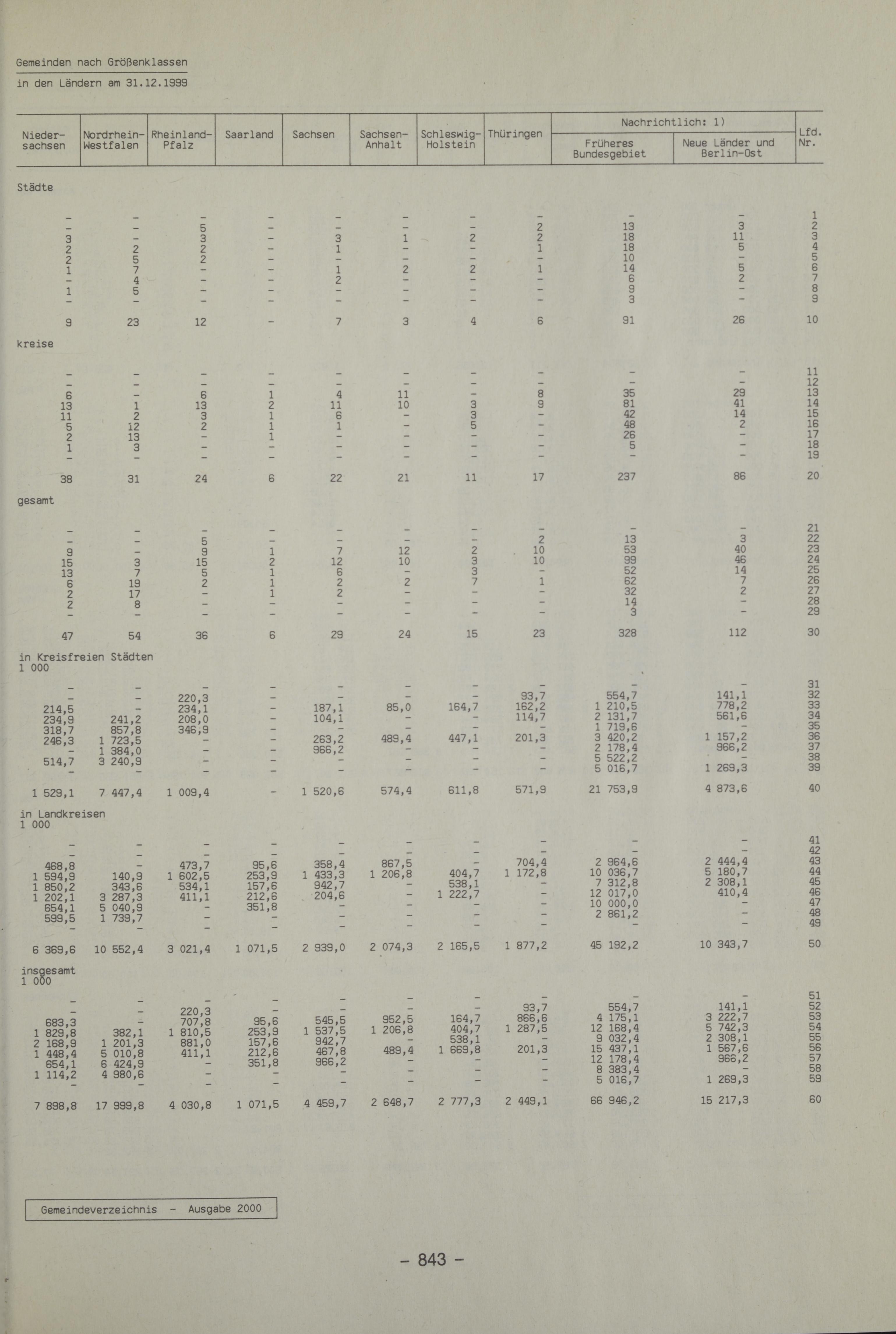 - [Abschnitt] 6.5 Gemeinden in den Ländern am 31.12.1999 nach der ... 848