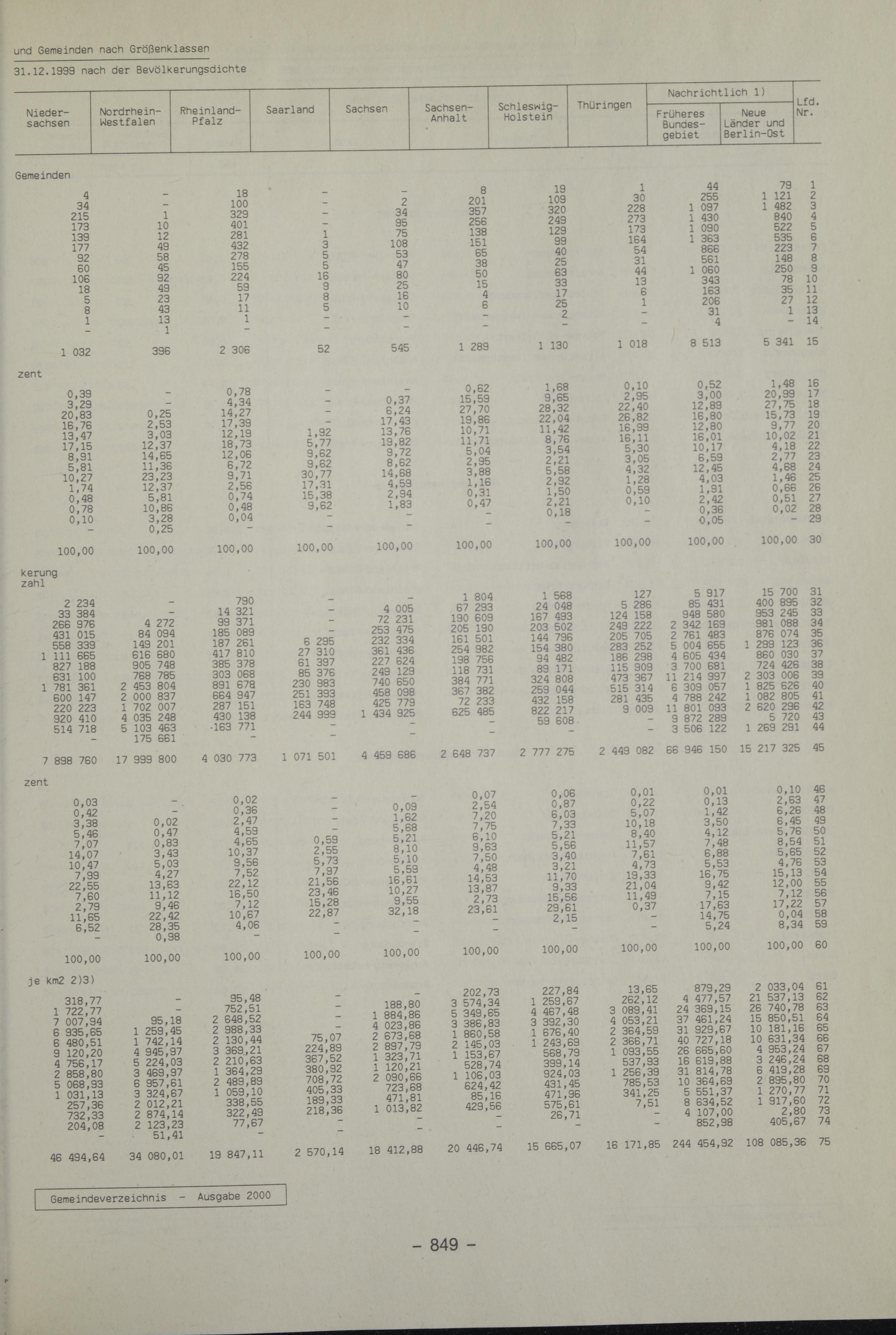 - [Abschnitt] 6.5 Gemeinden in den Ländern am 31.12.1999 nach der ... 848