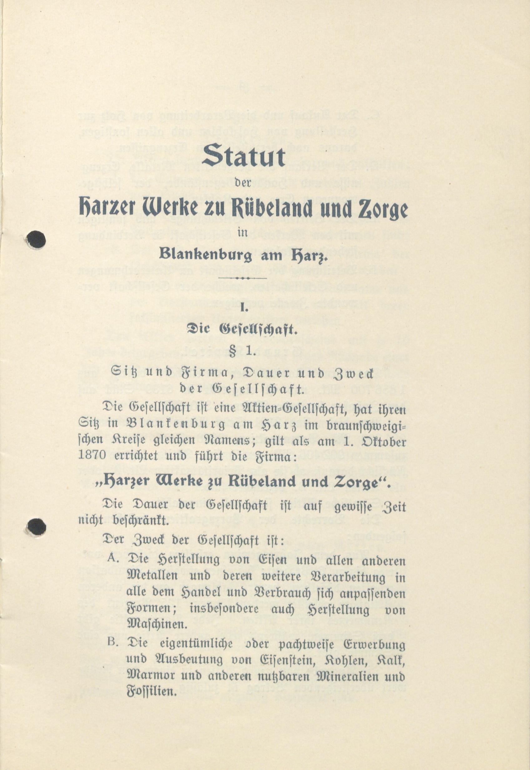 - [Abschnitt] Statut der Harzer Werke