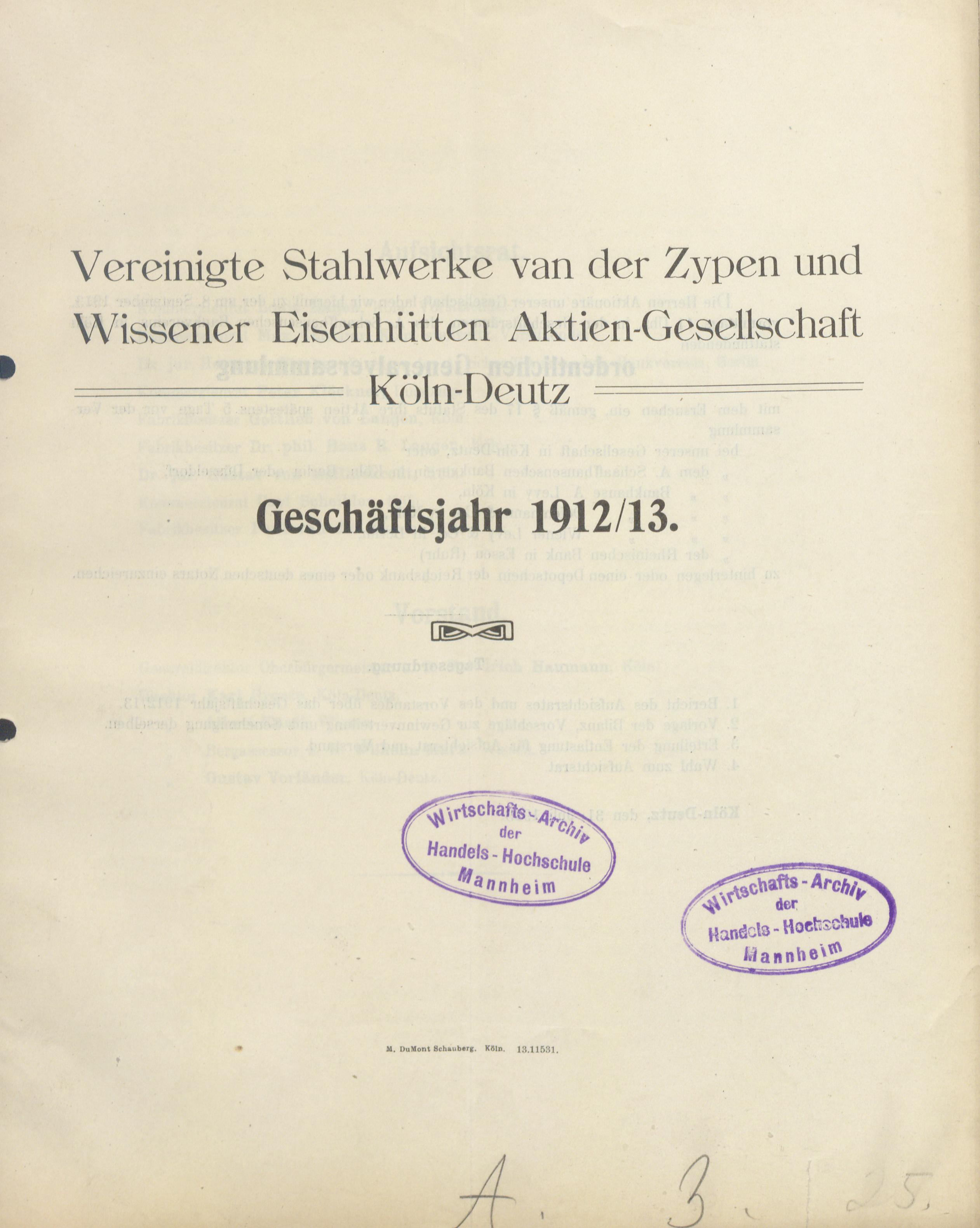 - Geschäftsjahr ... der Vereinigte Stahlwerke van der Zypen und Wissener Eisenhütten Aktien-Gesellschaft