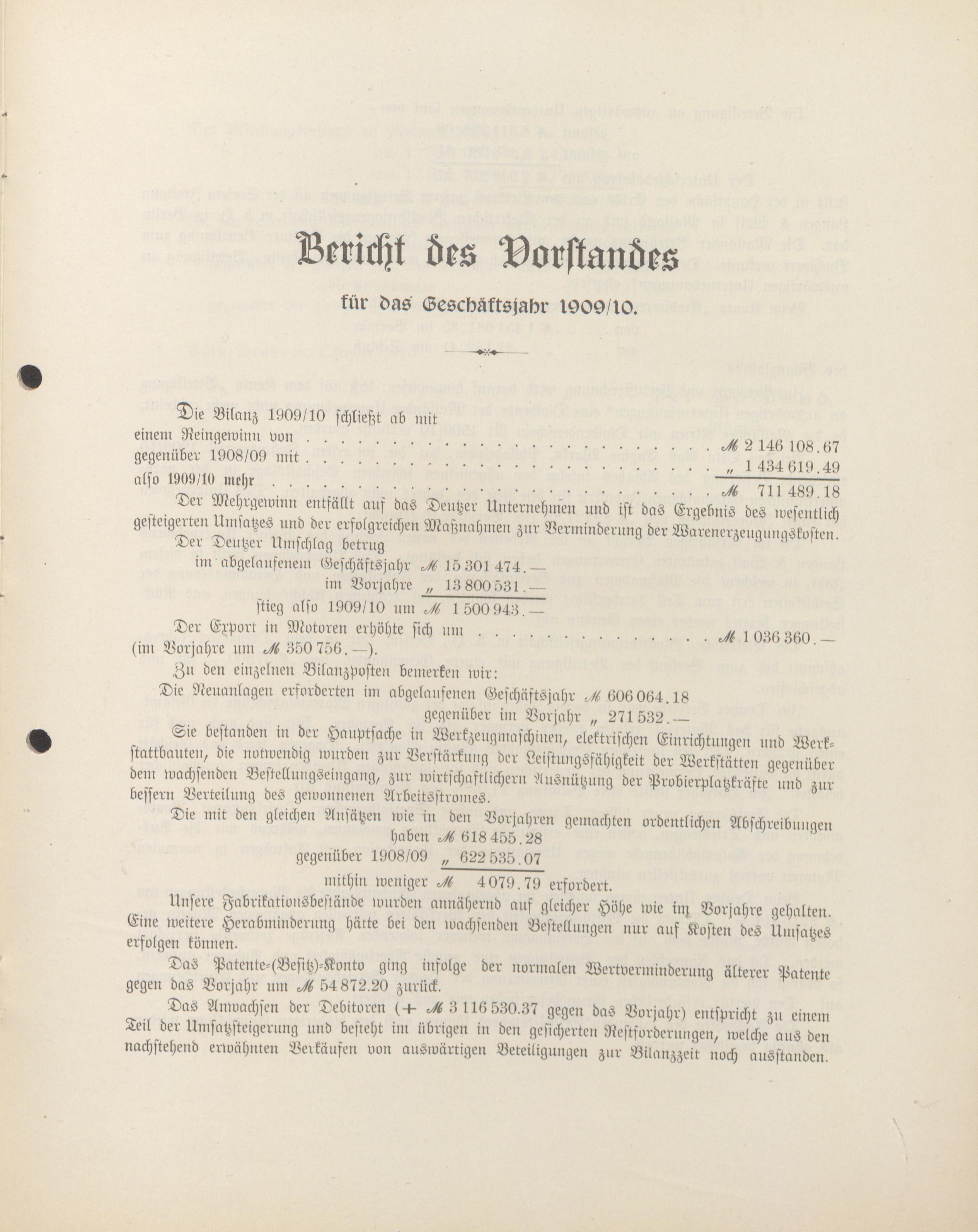 Geschäftsbericht der Gasmotoren-Fabrik Deutz