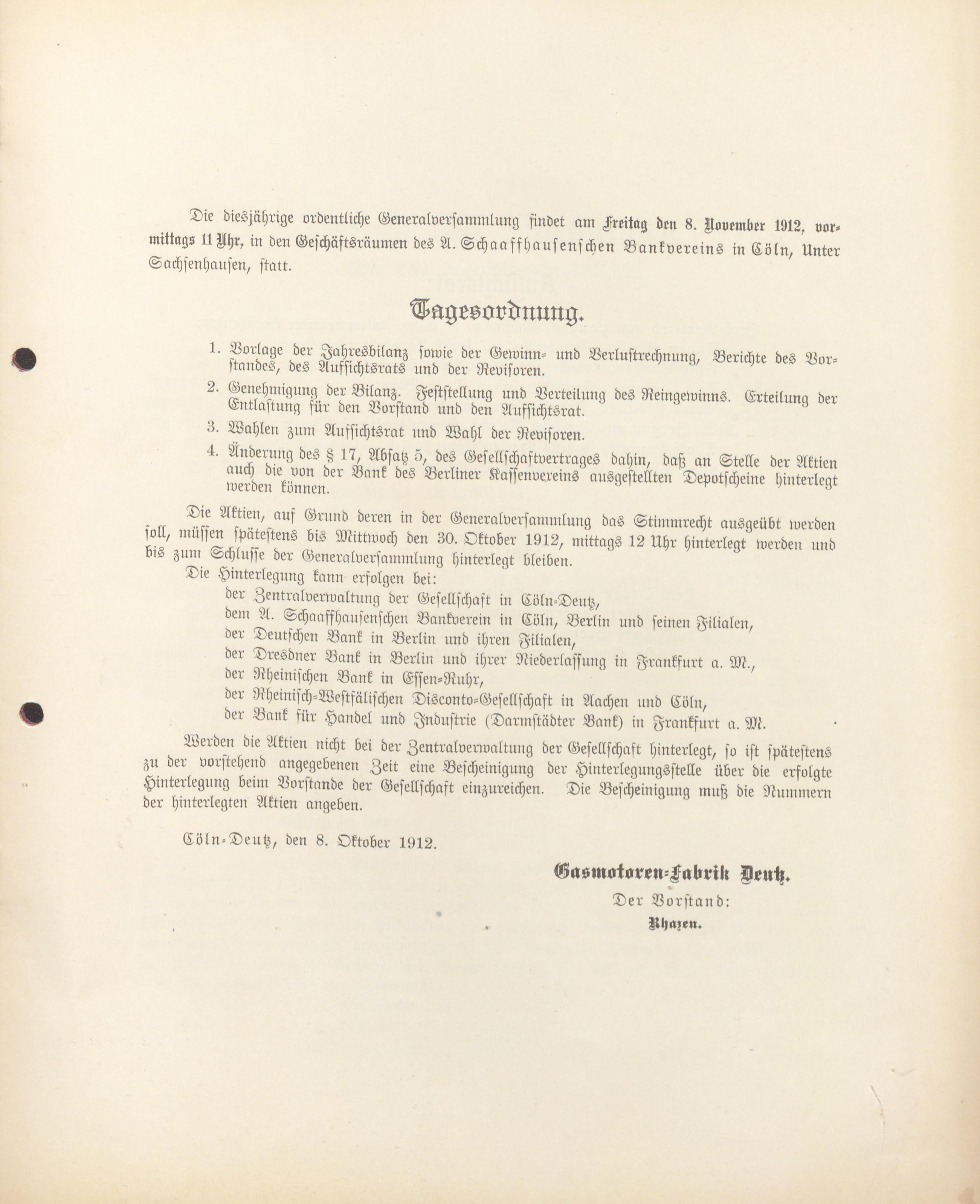 Geschäftsbericht der Gasmotoren-Fabrik Deutz