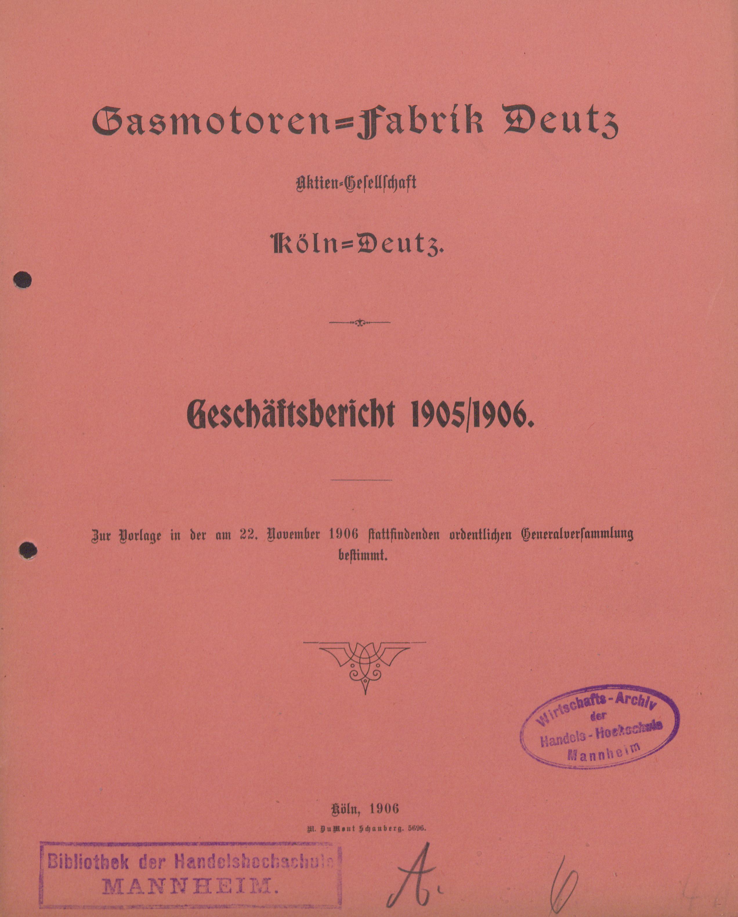 Geschäftsbericht der Gasmotoren-Fabrik Deutz1898/991902/19031903/19041904/19051905/19061906/19071907/19081908/091909/101910/111911/121912/131913/141914/151915/161916/171917/181918/191919/201920/21GesellschaftsvertragZeitungsausschnitt