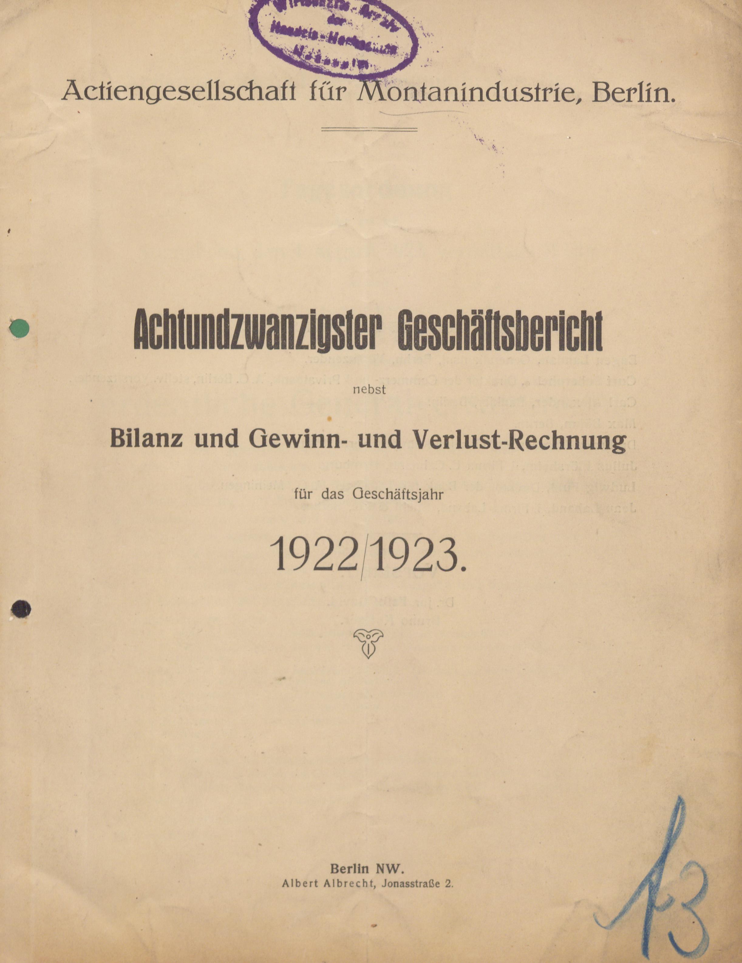 - Geschäfts-Bericht der Actiengesellschaft für Montanindustrie