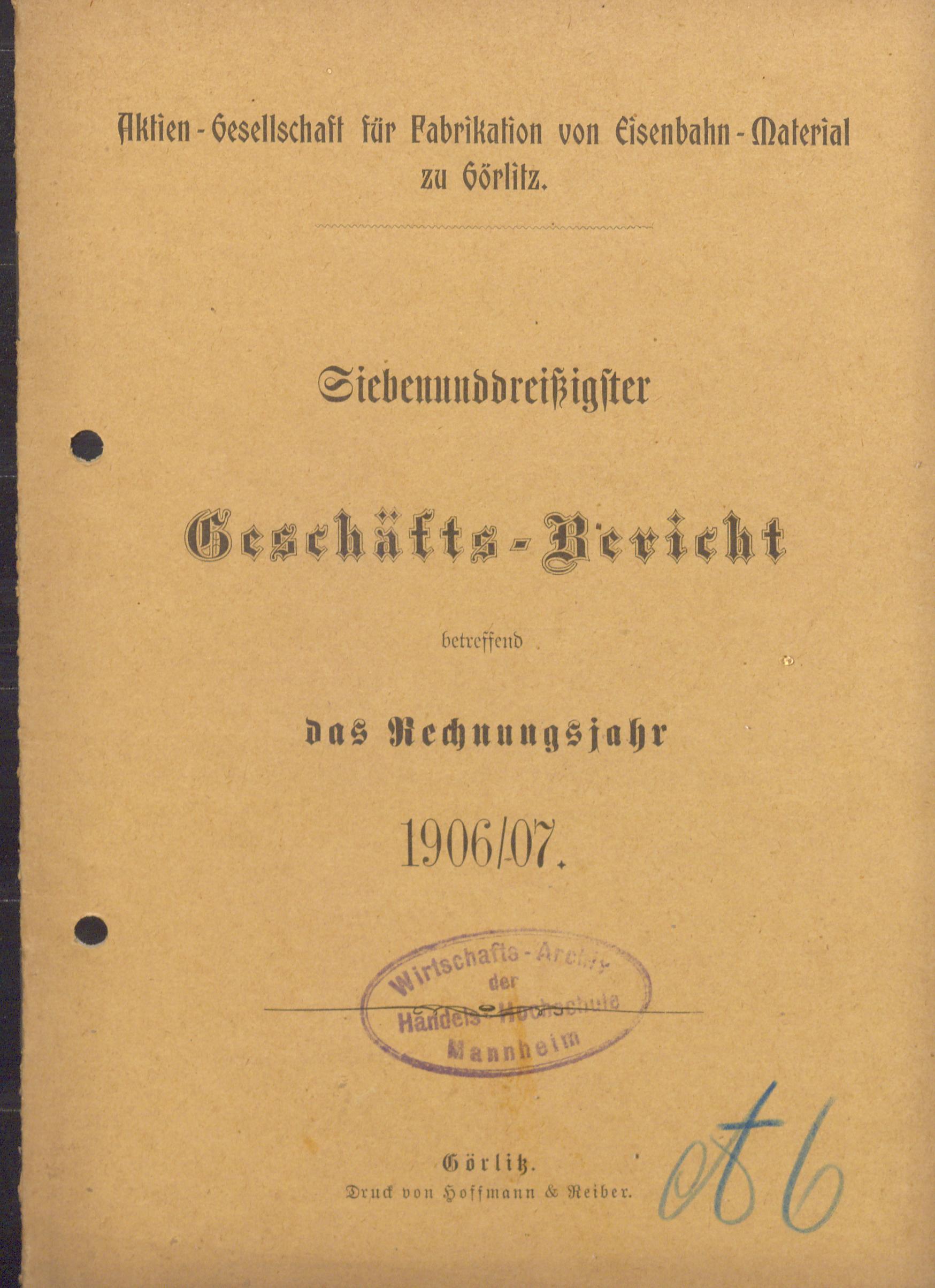 - Geschäfts-Bericht der Aktiengesellschaft für Fabrikation von Eisenbahnmaterial