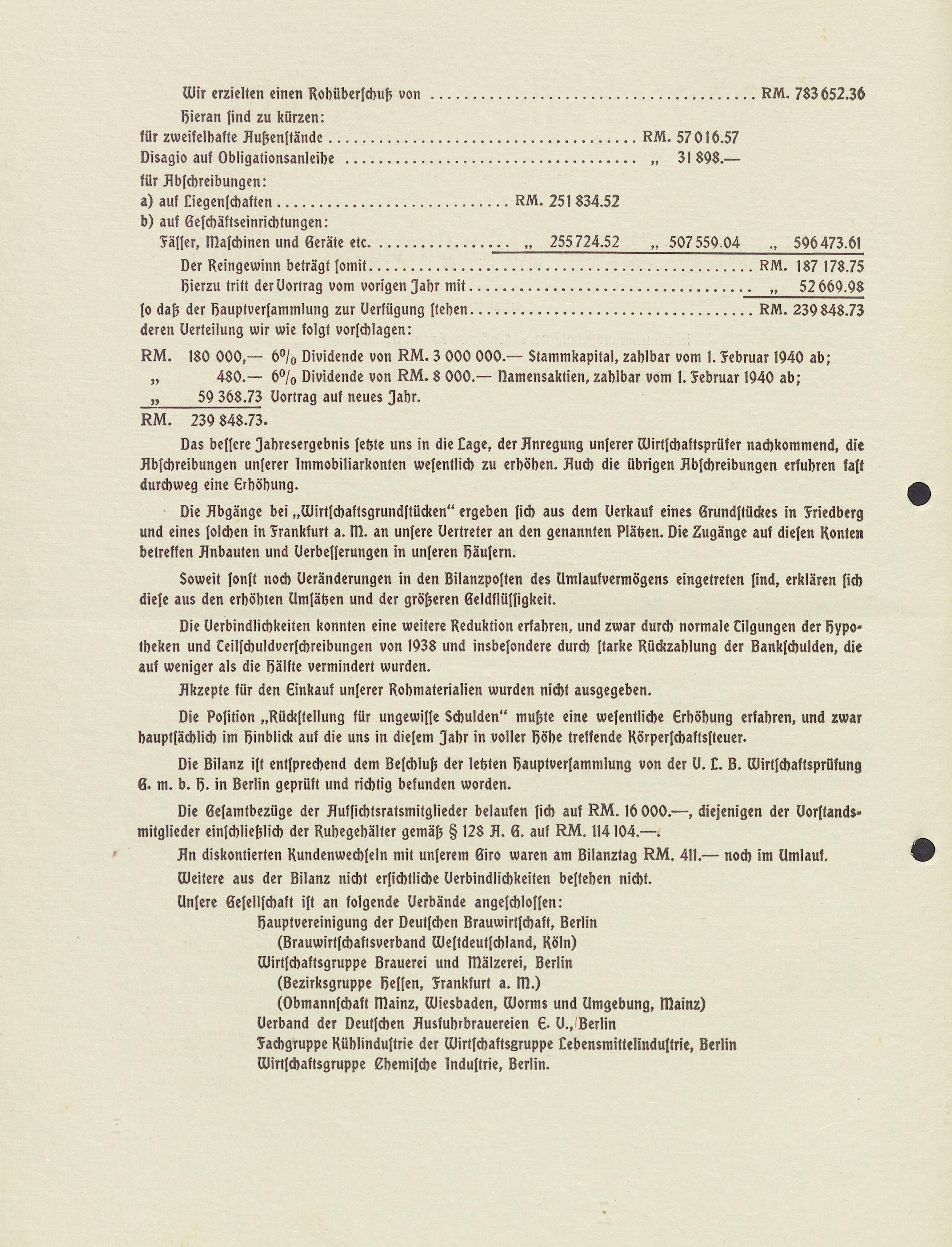 - Geschäfts-Bericht des Vorstandes an die Aktionäre der Mainzer Aktien-Bierbrauerei in Mainz
