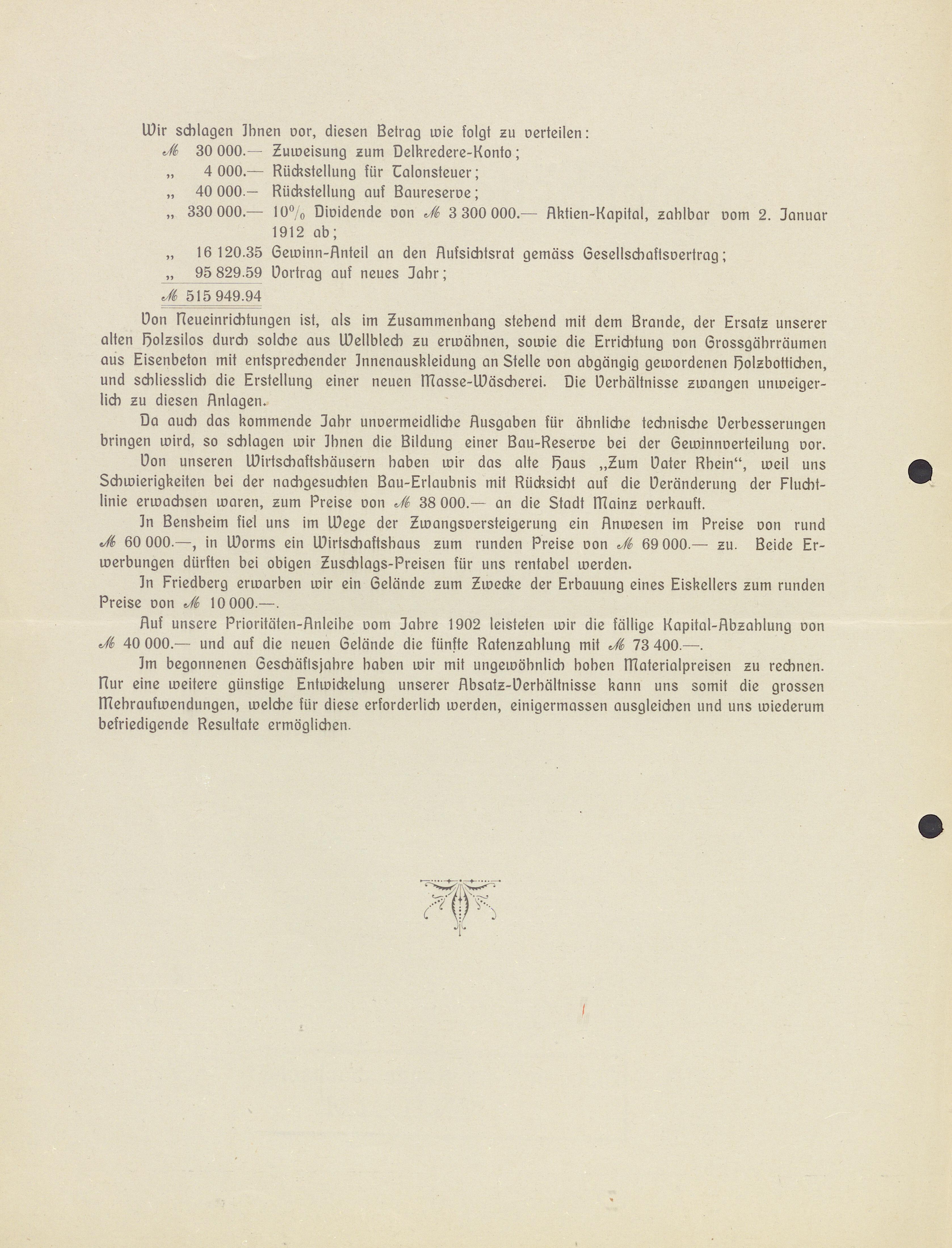 - Geschäfts-Bericht des Vorstandes an die Aktionäre der Mainzer Aktien-Bierbrauerei in Mainz