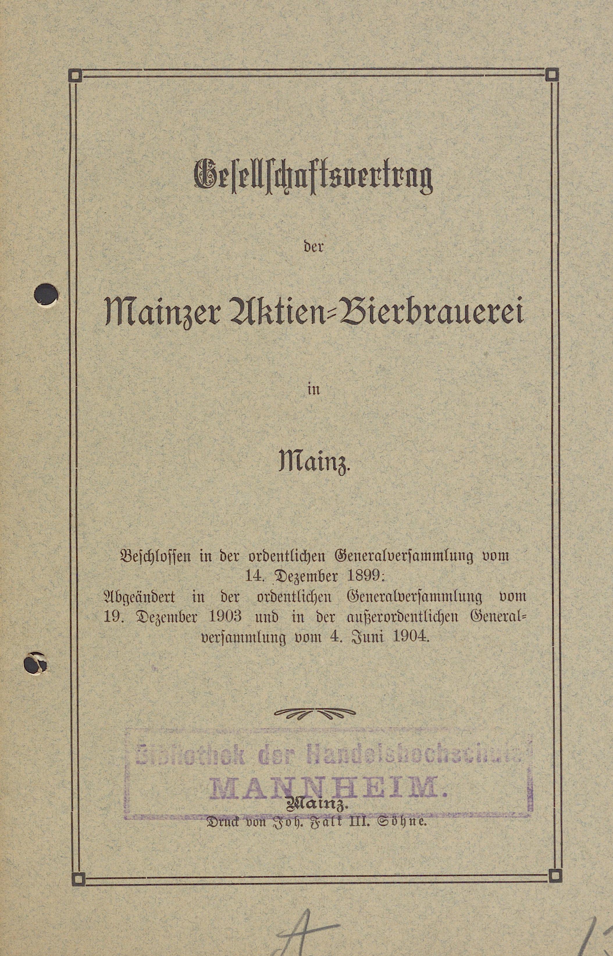 - Gesellschaftsvertrag der Mainzer Aktien-Bierbrauerei