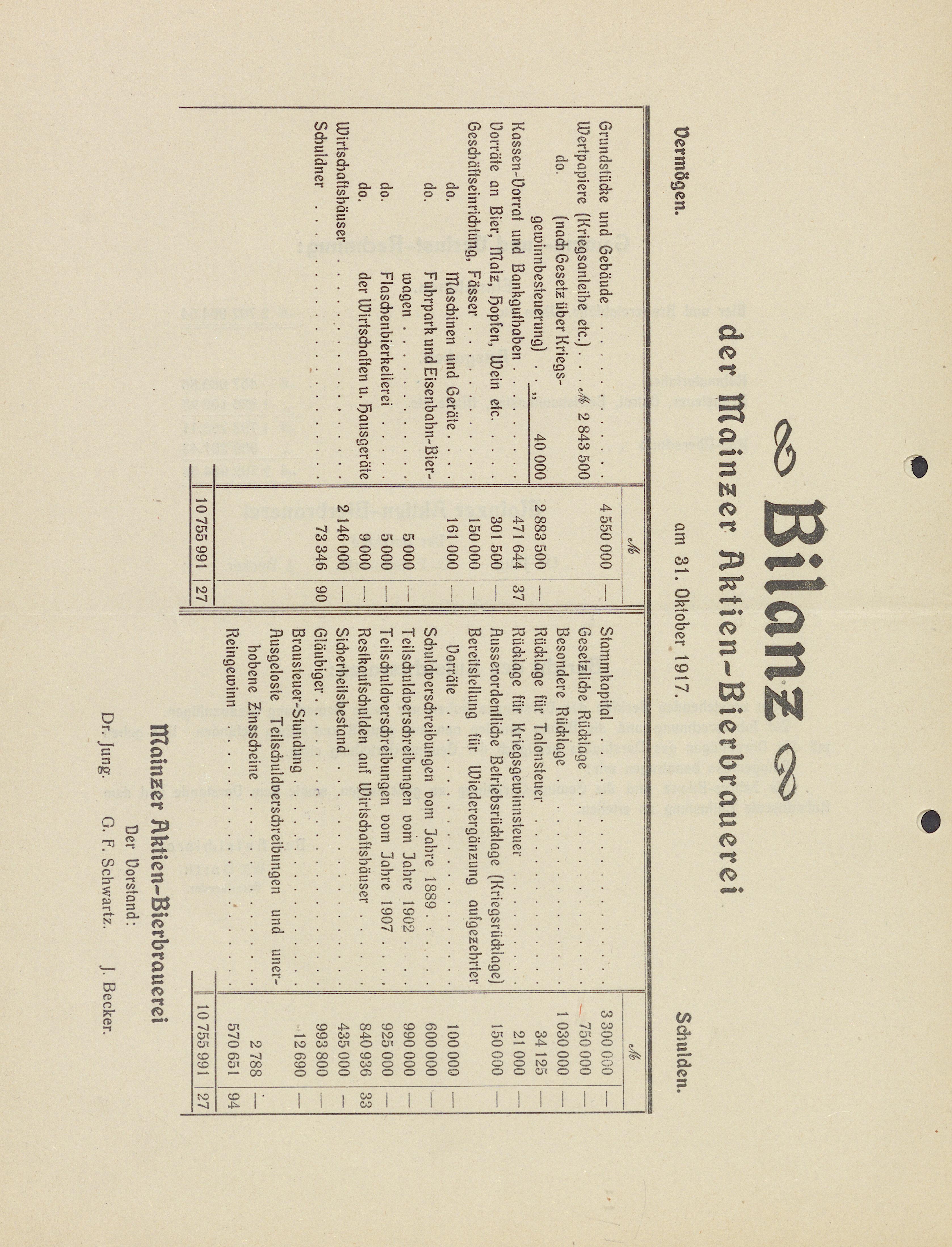 - Geschäfts-Bericht des Vorstandes an die Aktionäre der Mainzer Aktien-Bierbrauerei in Mainz