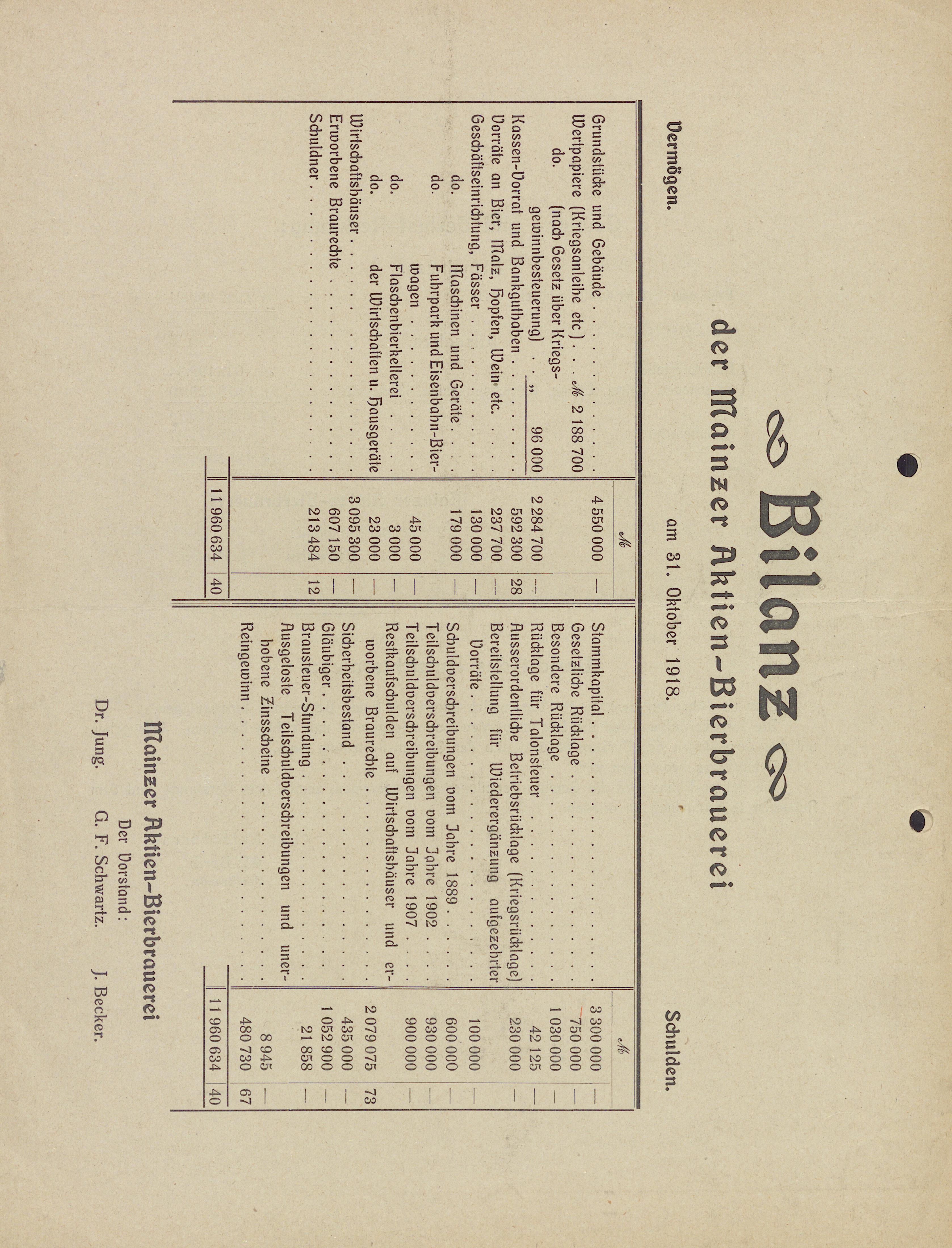 - Geschäfts-Bericht des Vorstandes an die Aktionäre der Mainzer Aktien-Bierbrauerei in Mainz