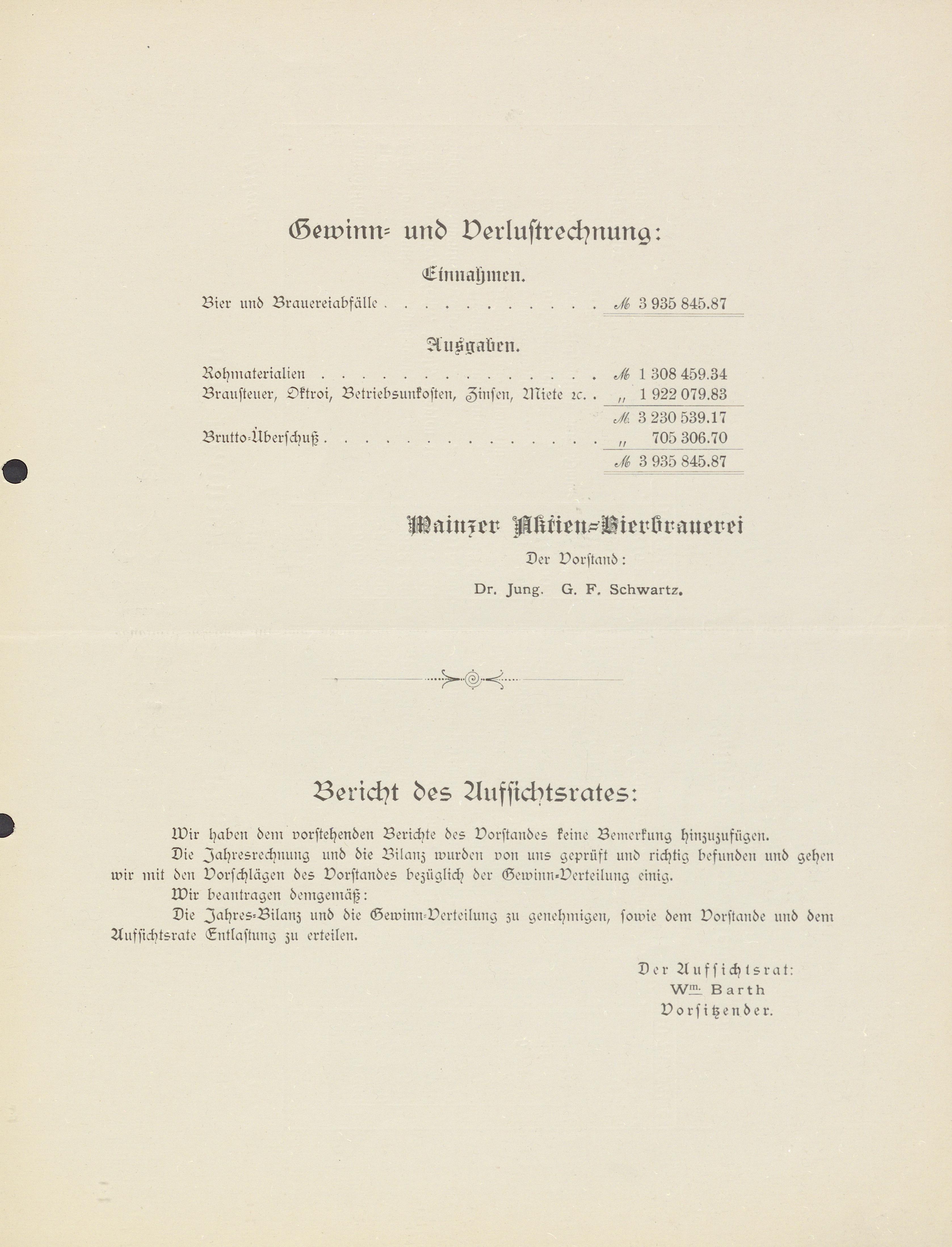 - Geschäfts-Bericht des Vorstandes an die Aktionäre der Mainzer Aktien-Bierbrauerei in Mainz