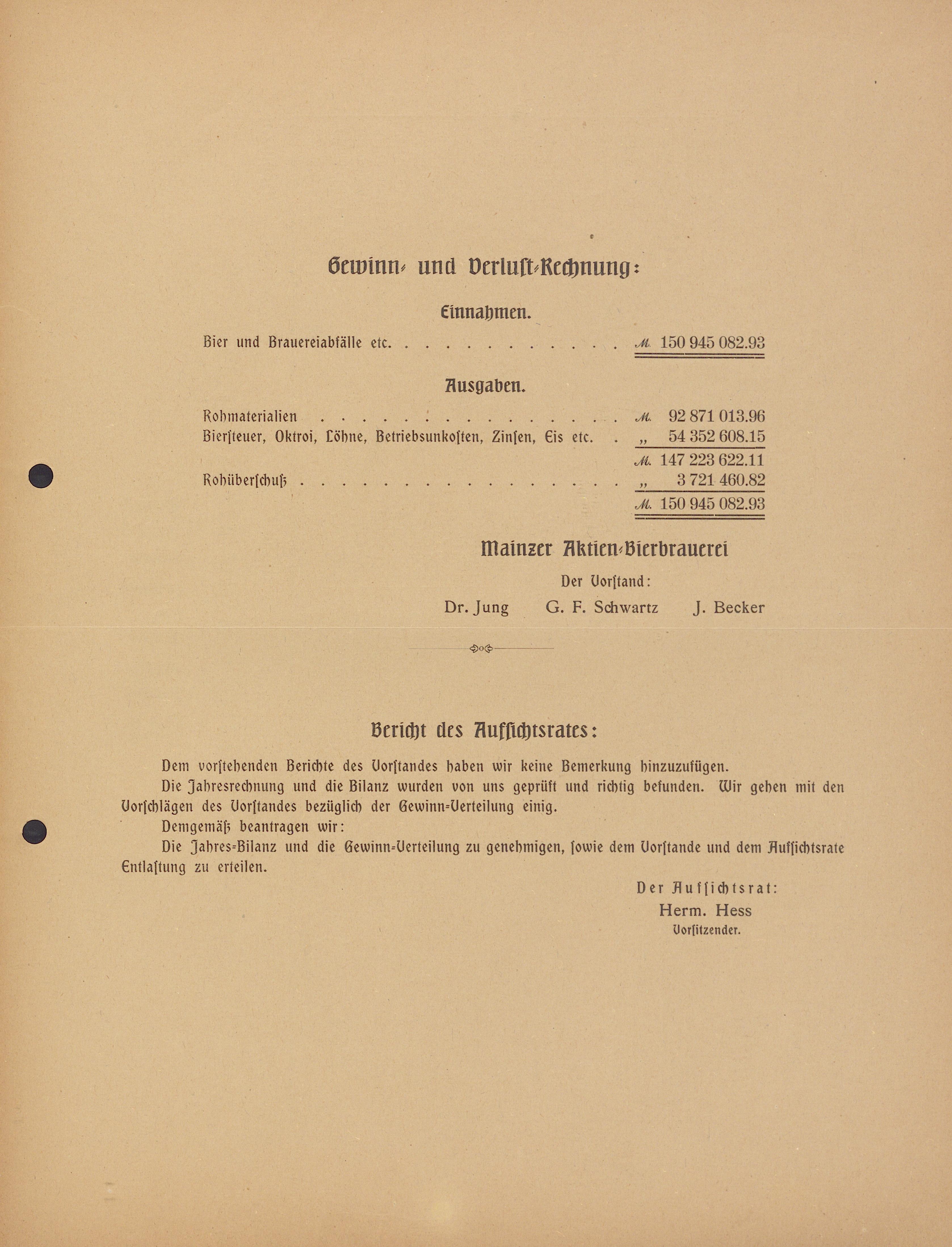 - Geschäfts-Bericht des Vorstandes an die Aktionäre der Mainzer Aktien-Bierbrauerei in Mainz