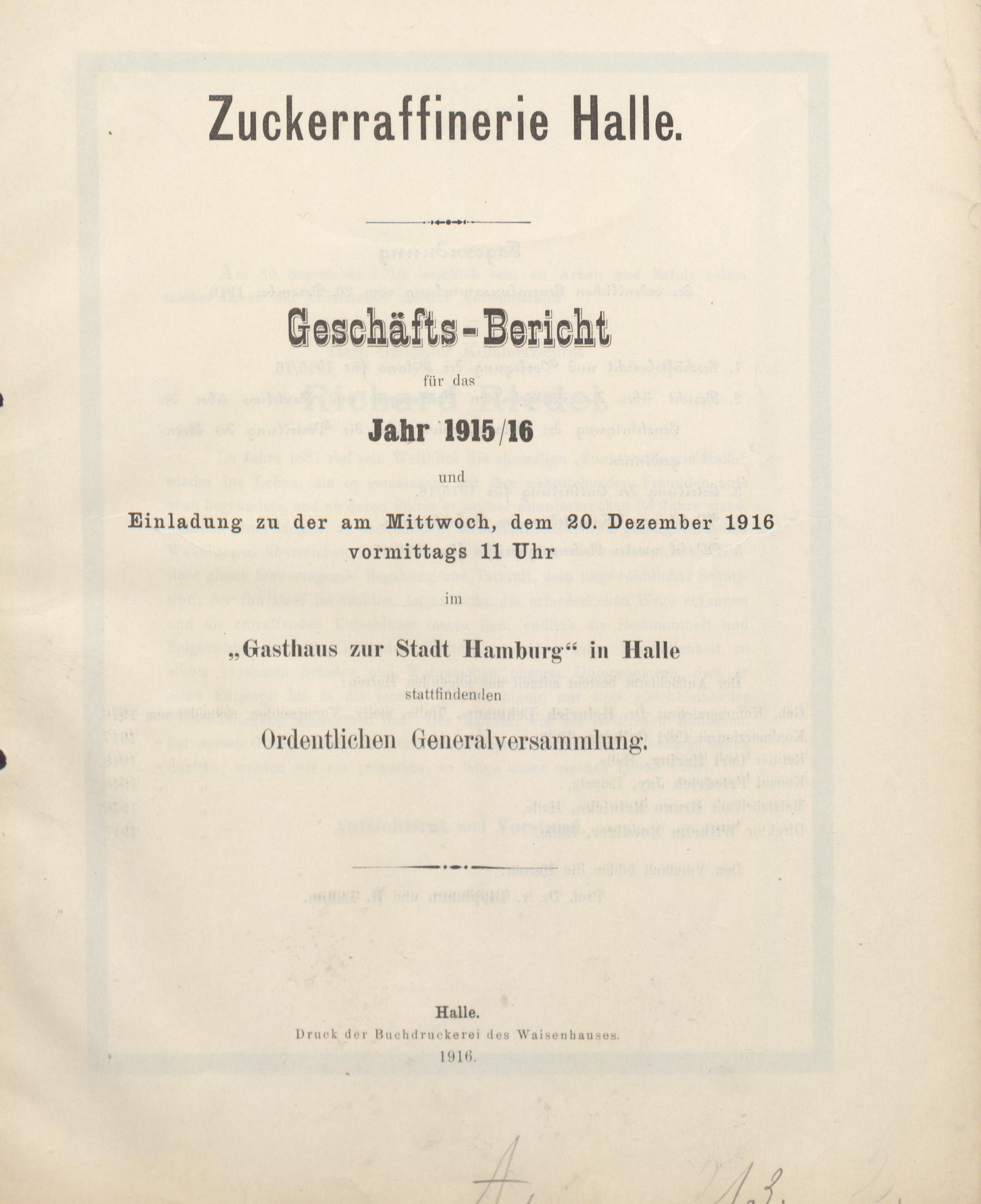 - Geschäfts-Bericht der Zuckerraffinerie Halle