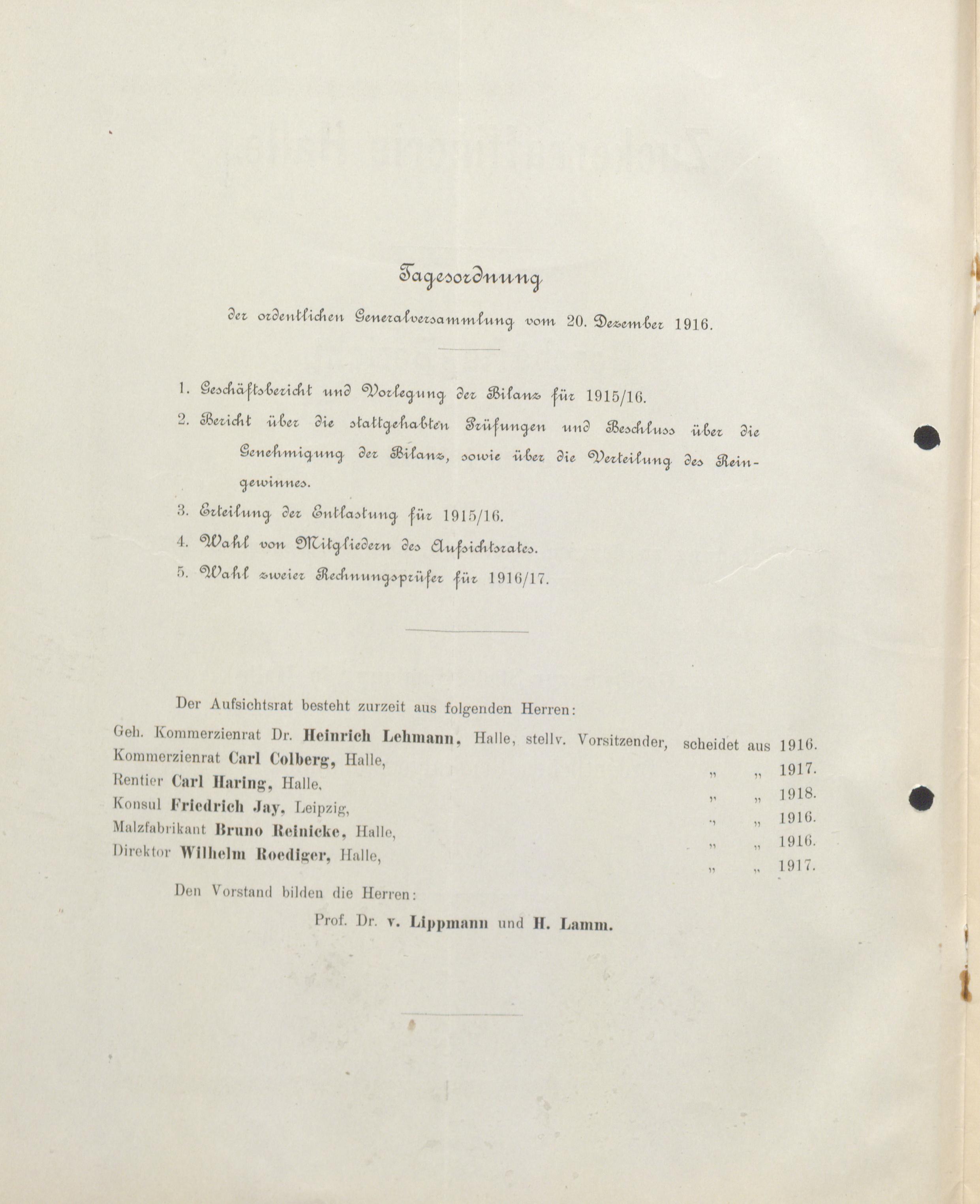 Geschäfts-Bericht der Zuckerraffinerie Halle