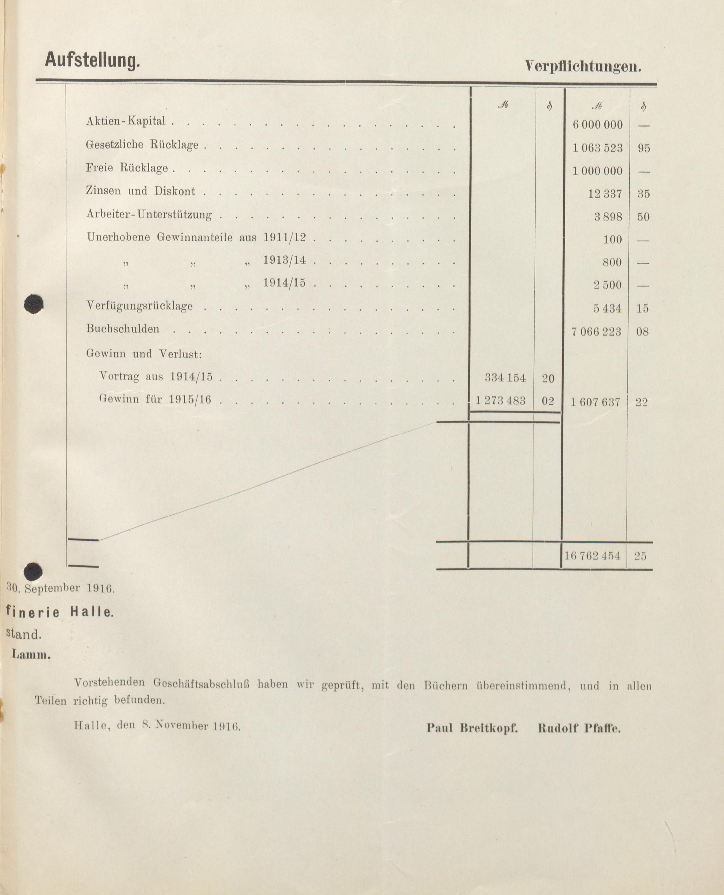 Geschäfts-Bericht der Zuckerraffinerie Halle