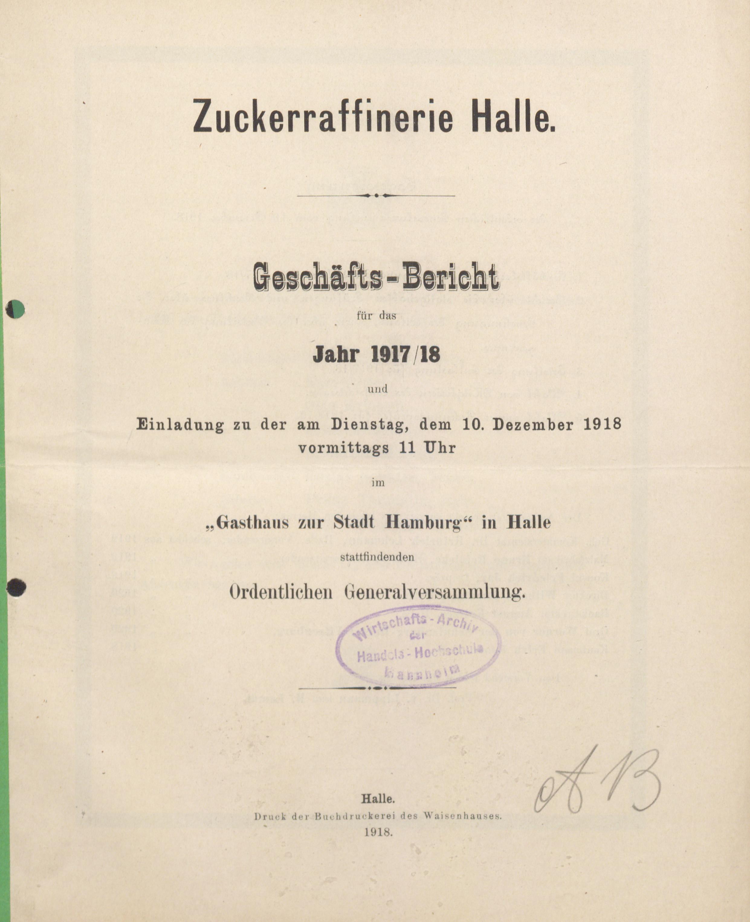 - Geschäfts-Bericht der Zuckerraffinerie Halle