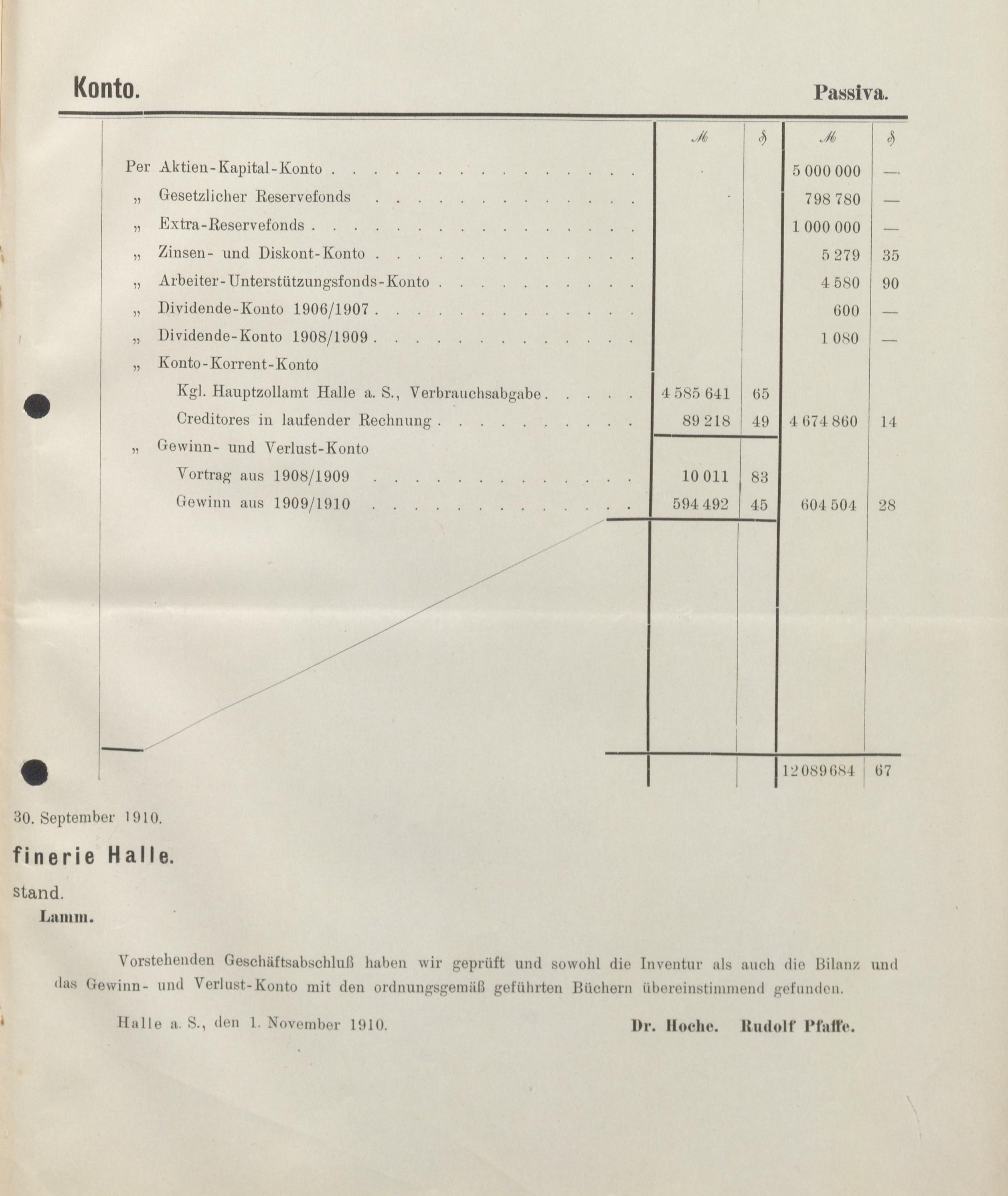 Geschäfts-Bericht der Zuckerraffinerie Halle