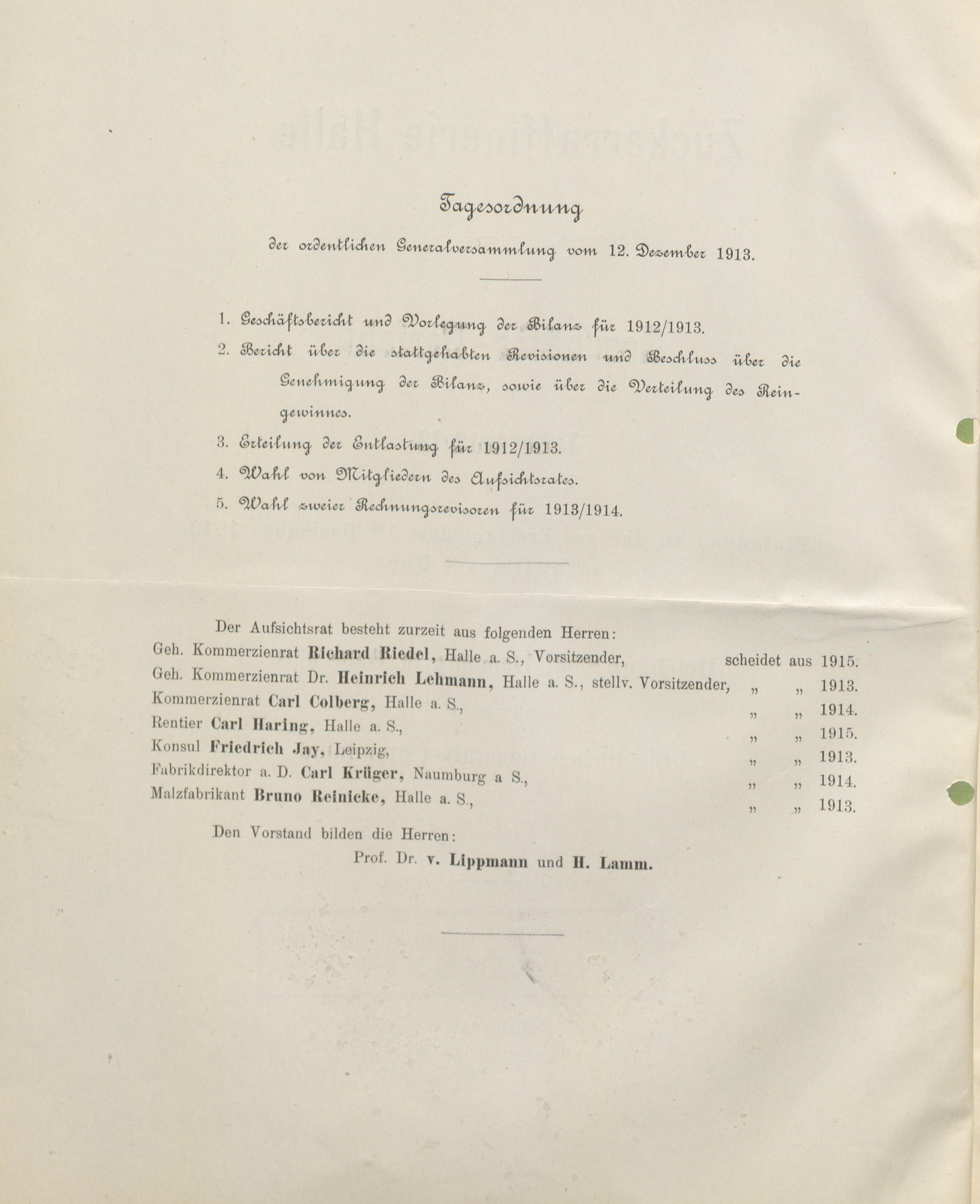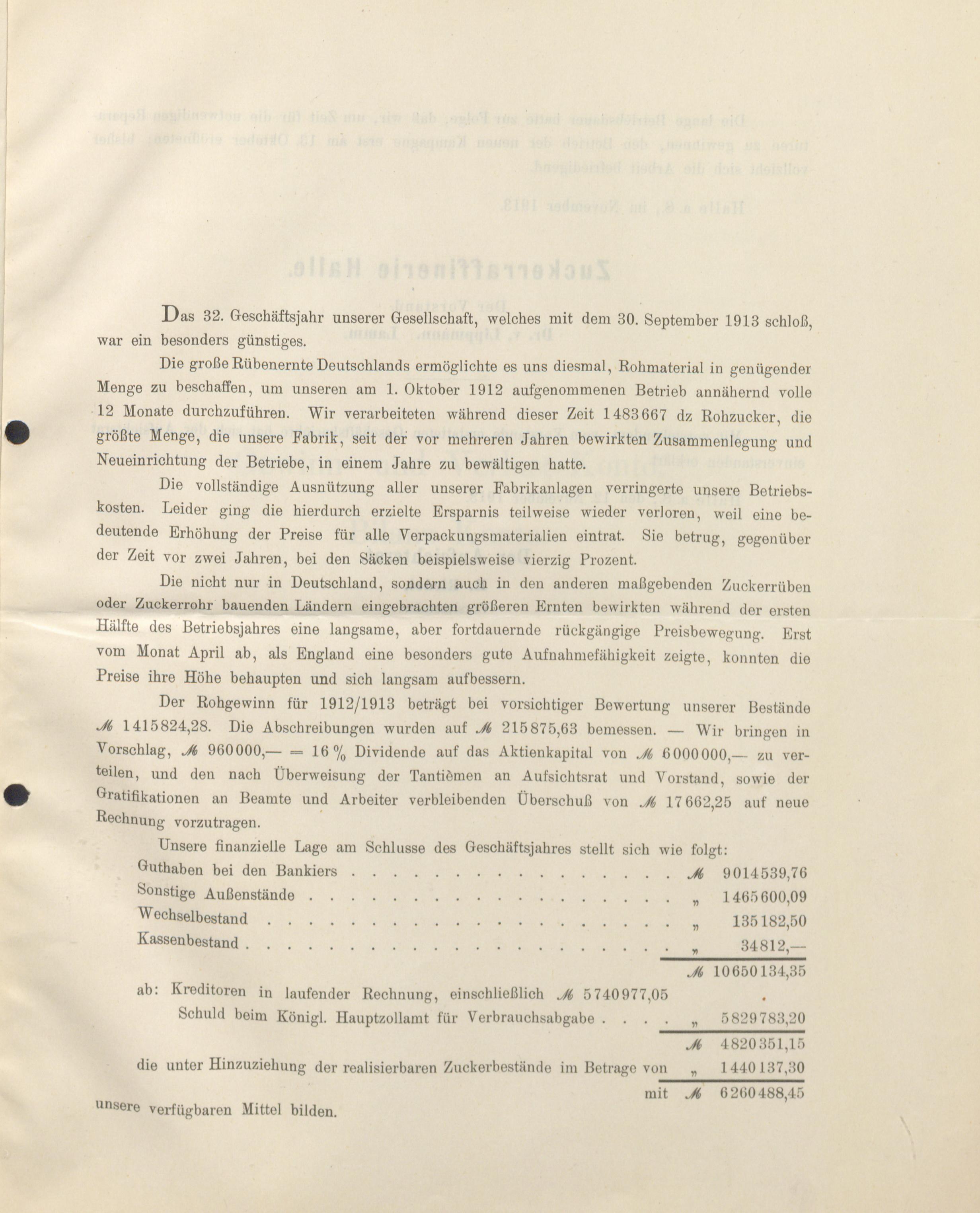 Geschäfts-Bericht der Zuckerraffinerie Halle