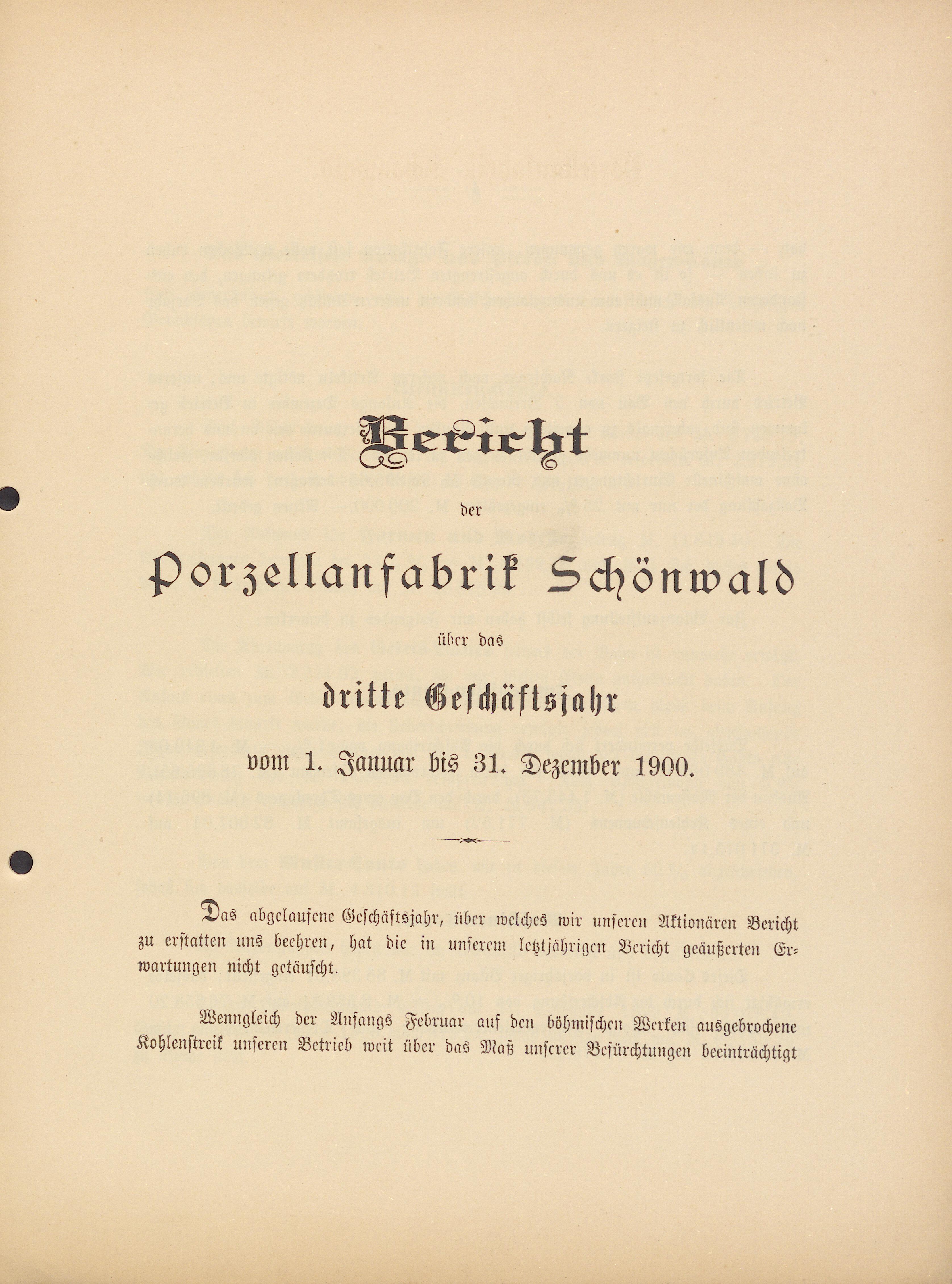 Bericht der Porzellanfabrik Schönwald