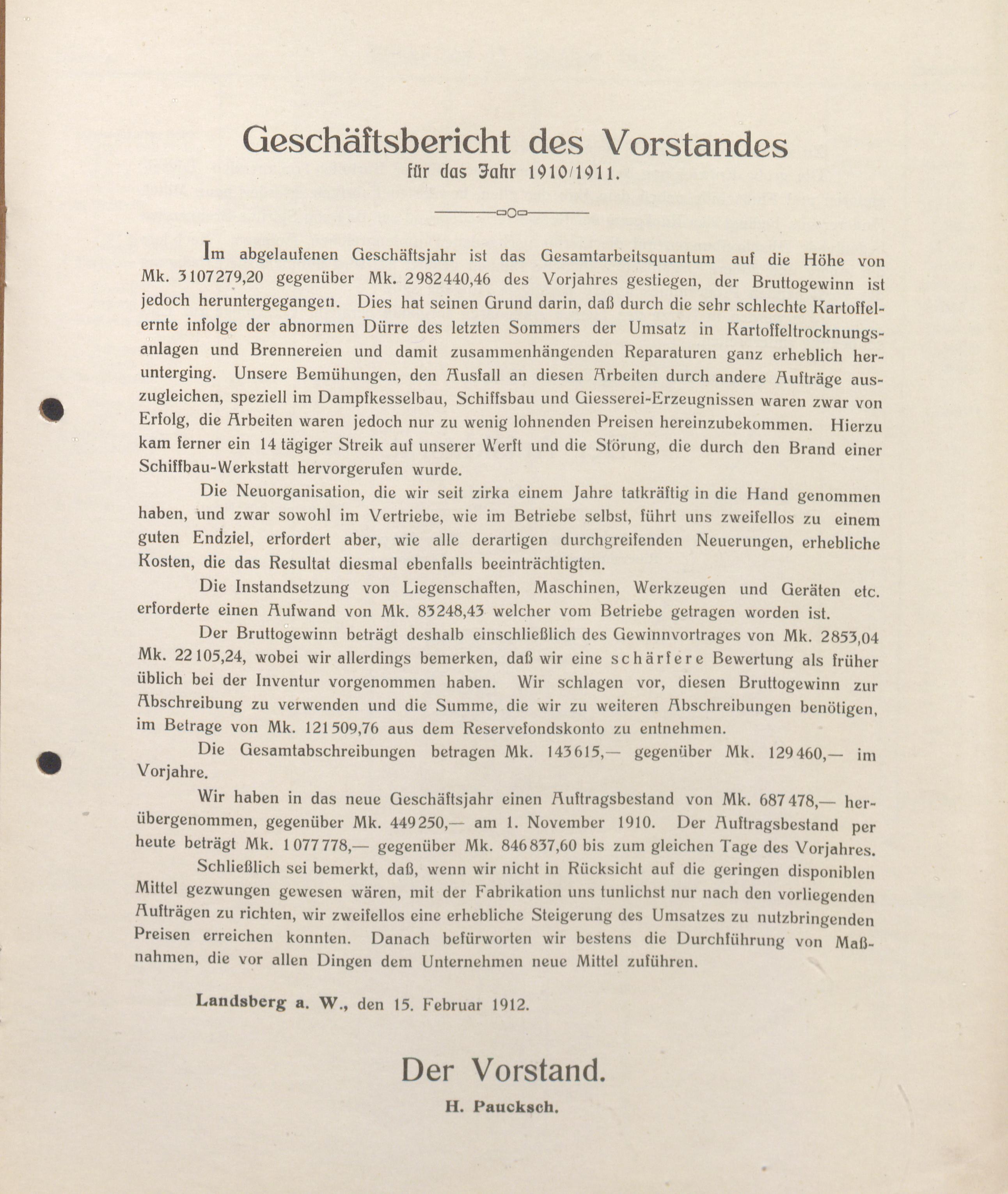 Geschäftsbericht der H. Paucksch A.G.