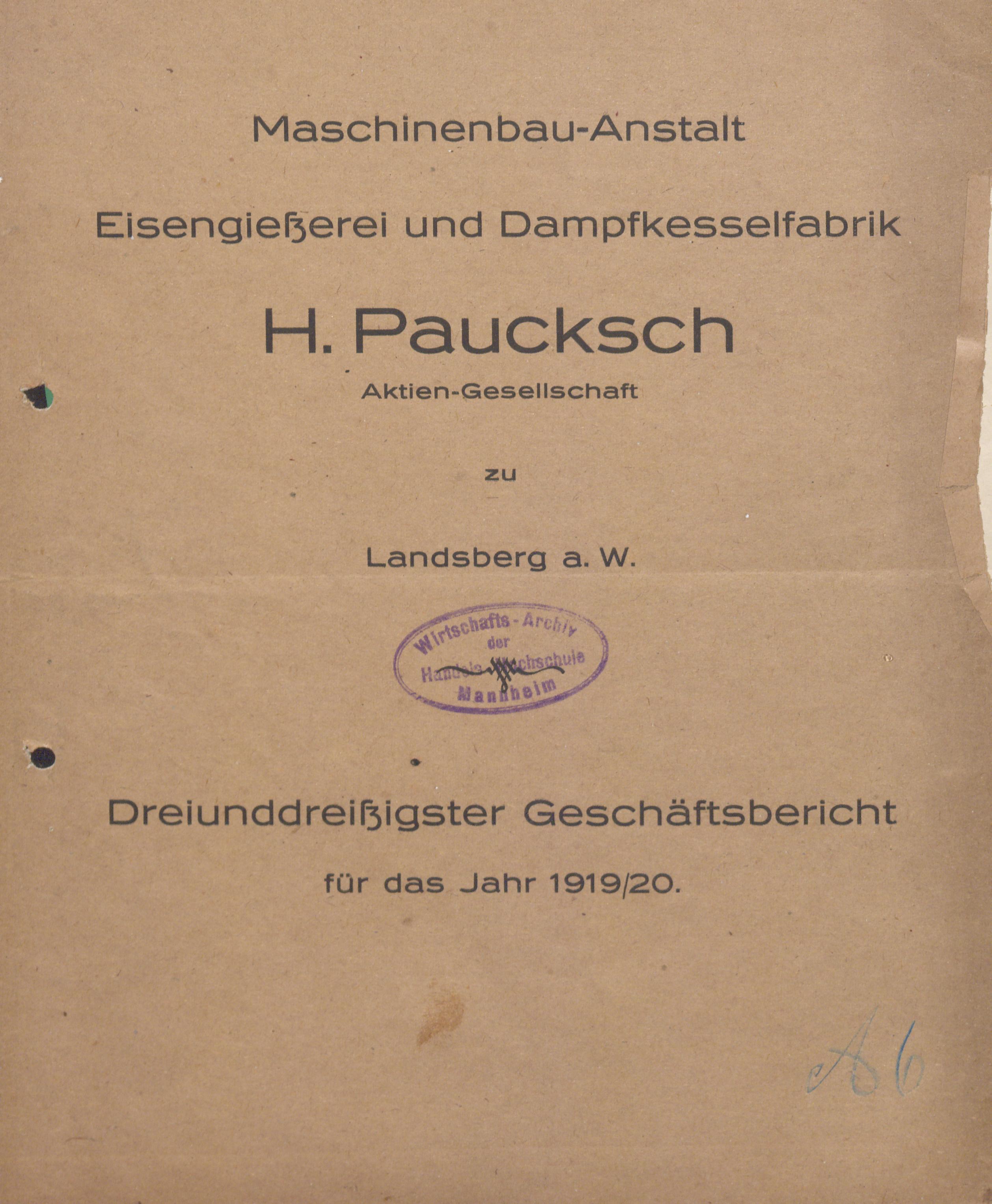 Geschäftsbericht der H. Paucksch A.G.