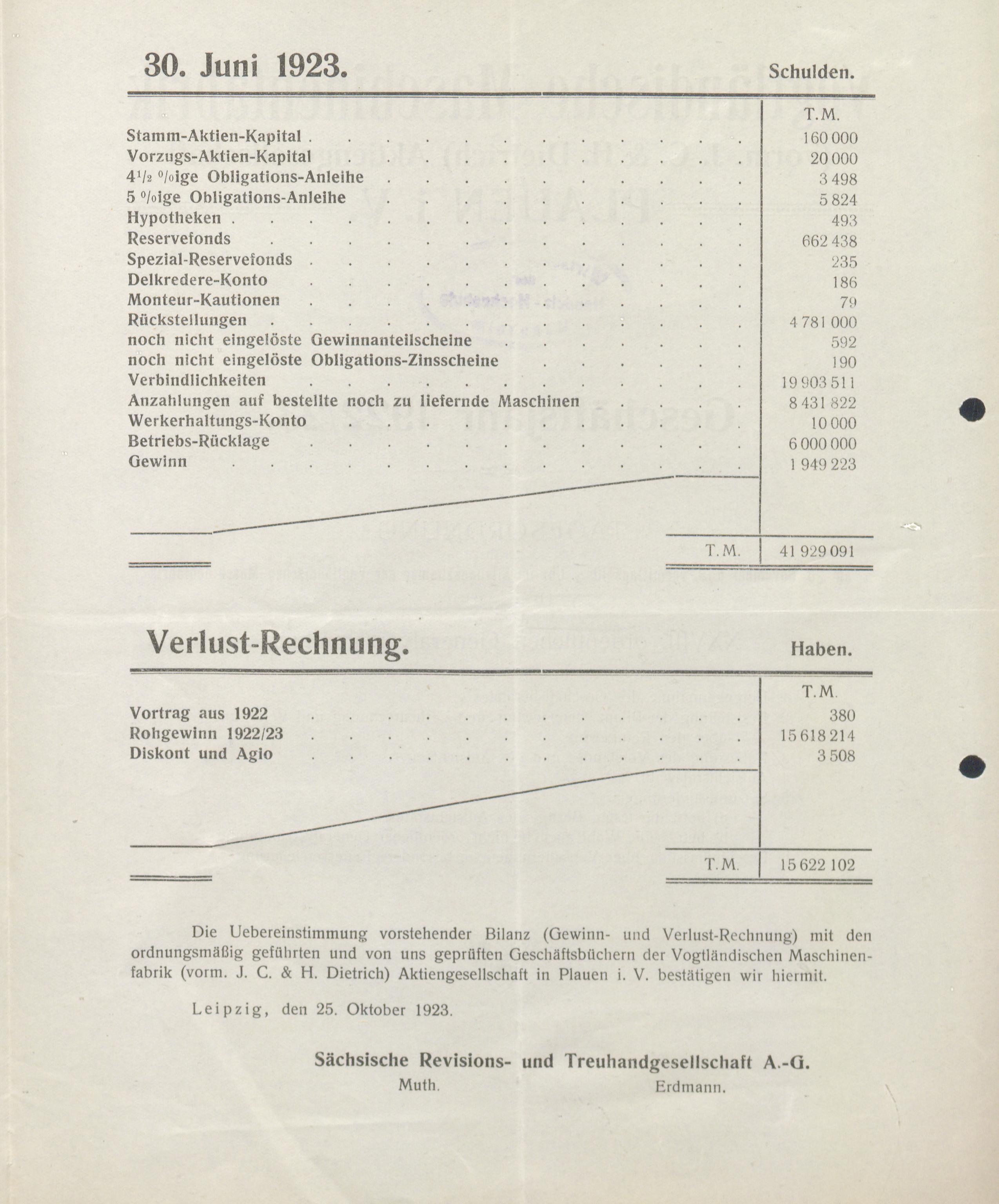 - Geschäfts-Bericht des Vorstandes der Vogtländischen Maschinenfabrik (Vormals J. C. & H. Dietrich) Aktiengesellschaft