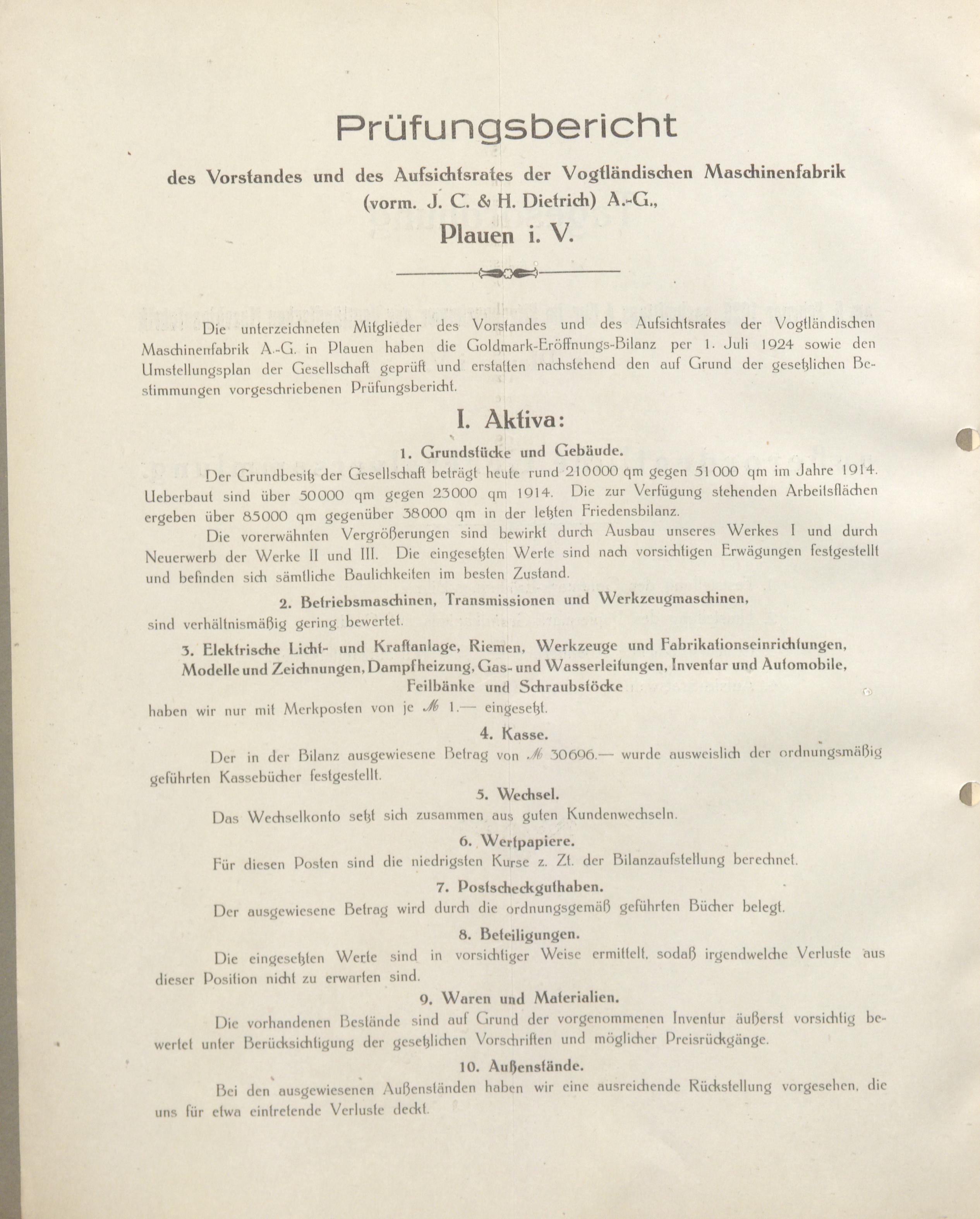 - Geschäfts-Bericht des Vorstandes der Vogtländischen Maschinenfabrik (Vormals J. C. & H. Dietrich) Aktiengesellschaft