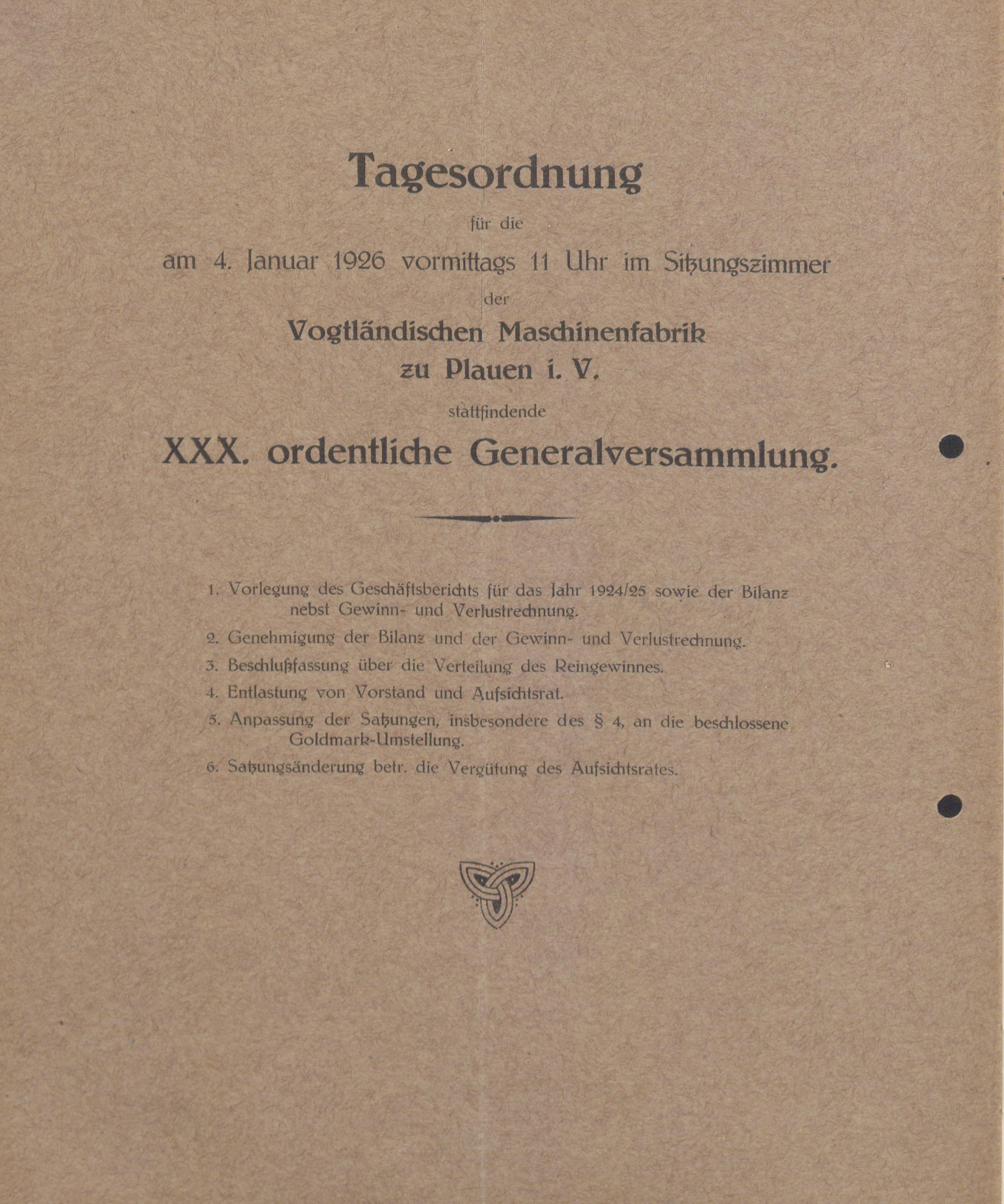 - Geschäfts-Bericht des Vorstandes der Vogtländischen Maschinenfabrik (Vormals J. C. & H. Dietrich) Aktiengesellschaft