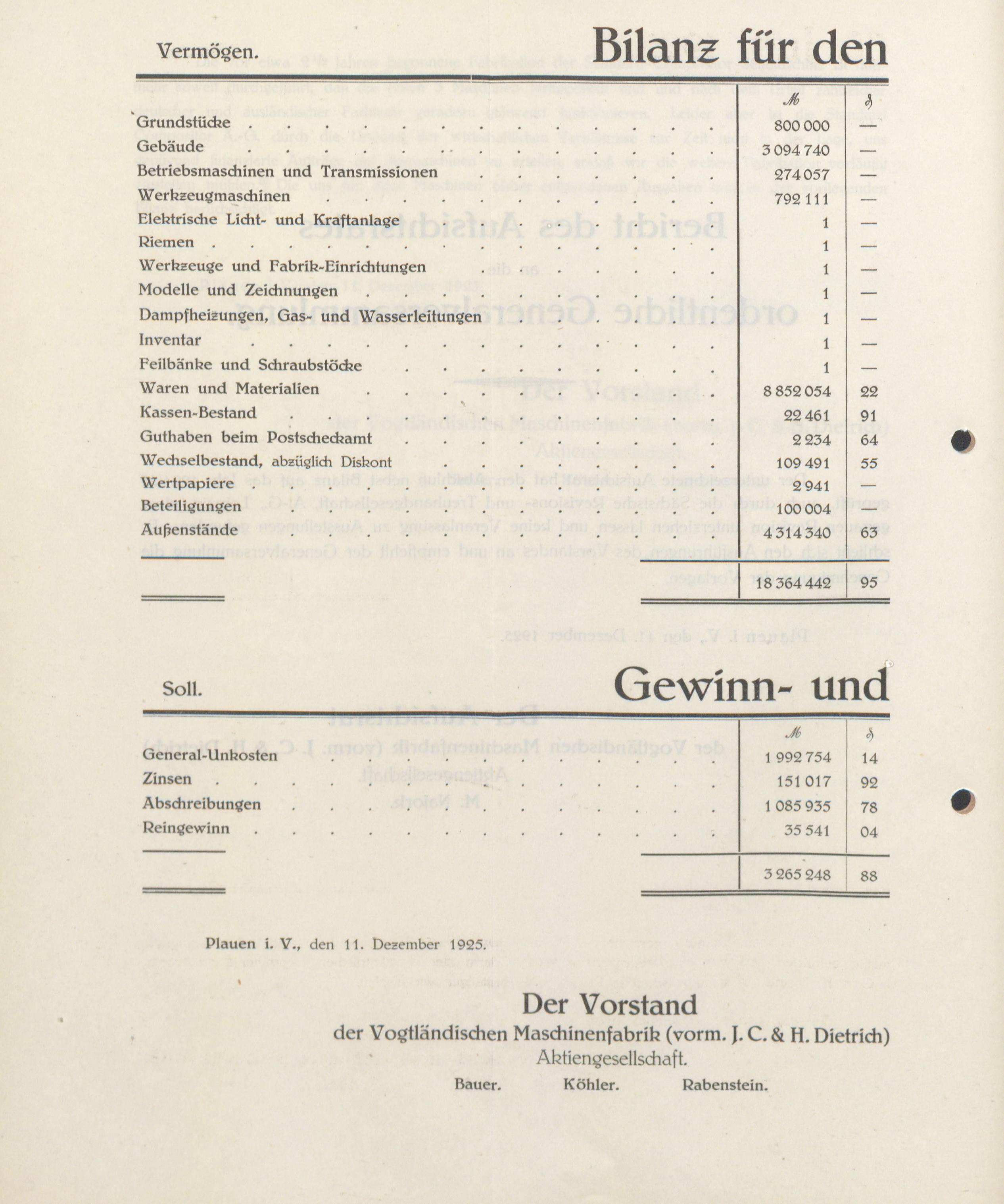 - Geschäfts-Bericht des Vorstandes der Vogtländischen Maschinenfabrik (Vormals J. C. & H. Dietrich) Aktiengesellschaft