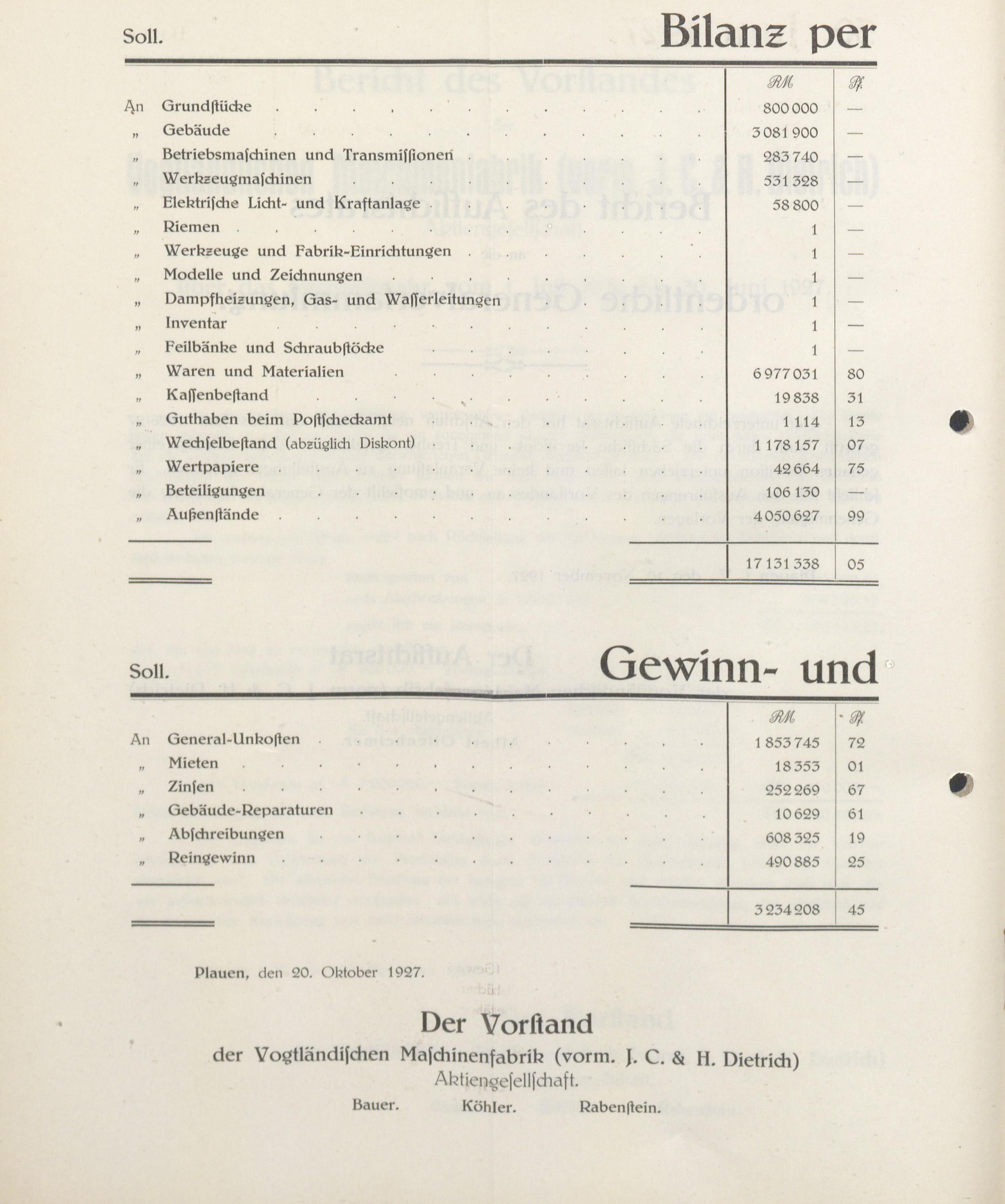 - Geschäfts-Bericht des Vorstandes der Vogtländischen Maschinenfabrik (Vormals J. C. & H. Dietrich) Aktiengesellschaft