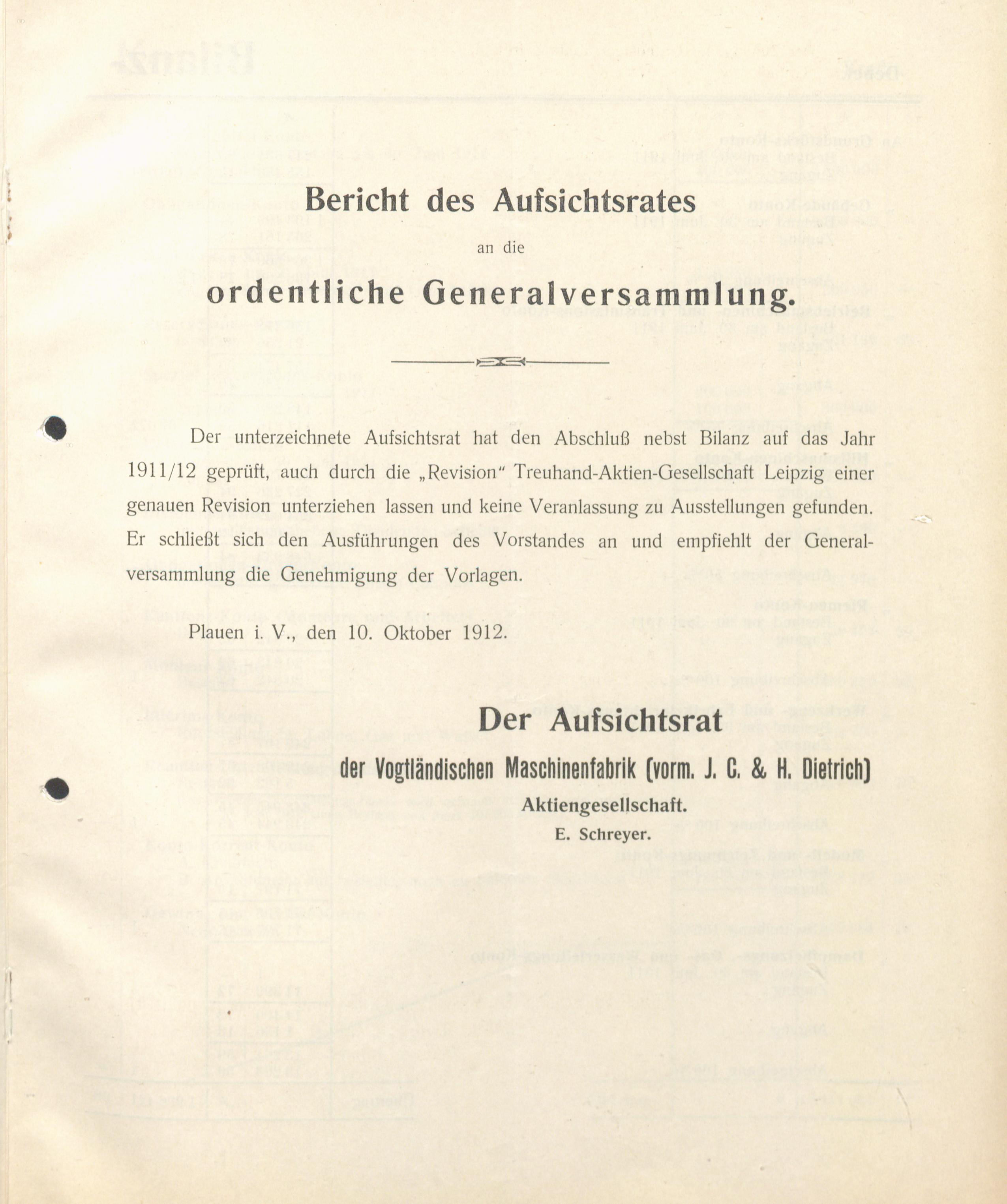 - Geschäfts-Bericht des Vorstandes der Vogtländischen Maschinenfabrik (Vormals J. C. & H. Dietrich) Aktiengesellschaft