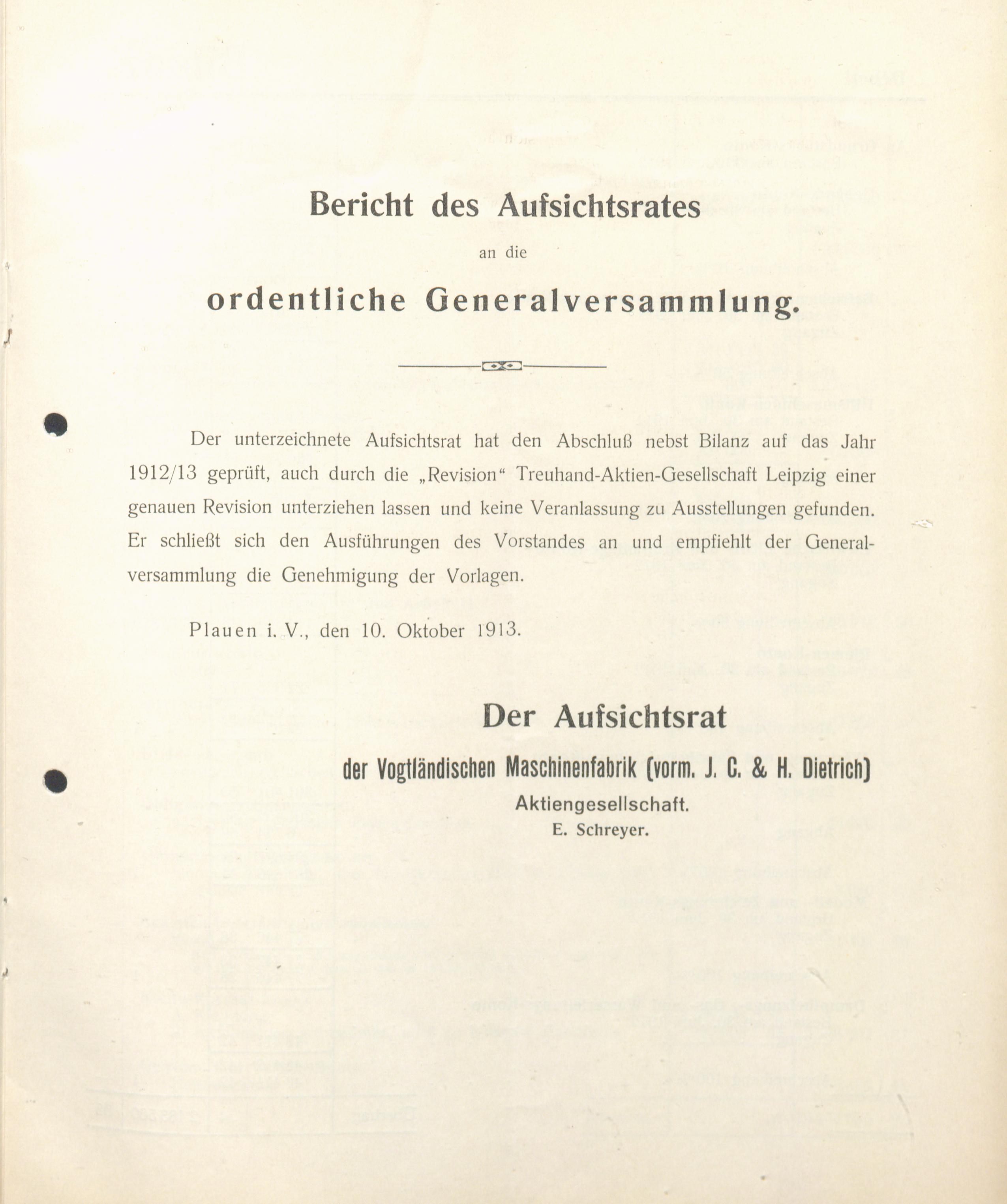 - Geschäfts-Bericht des Vorstandes der Vogtländischen Maschinenfabrik (Vormals J. C. & H. Dietrich) Aktiengesellschaft