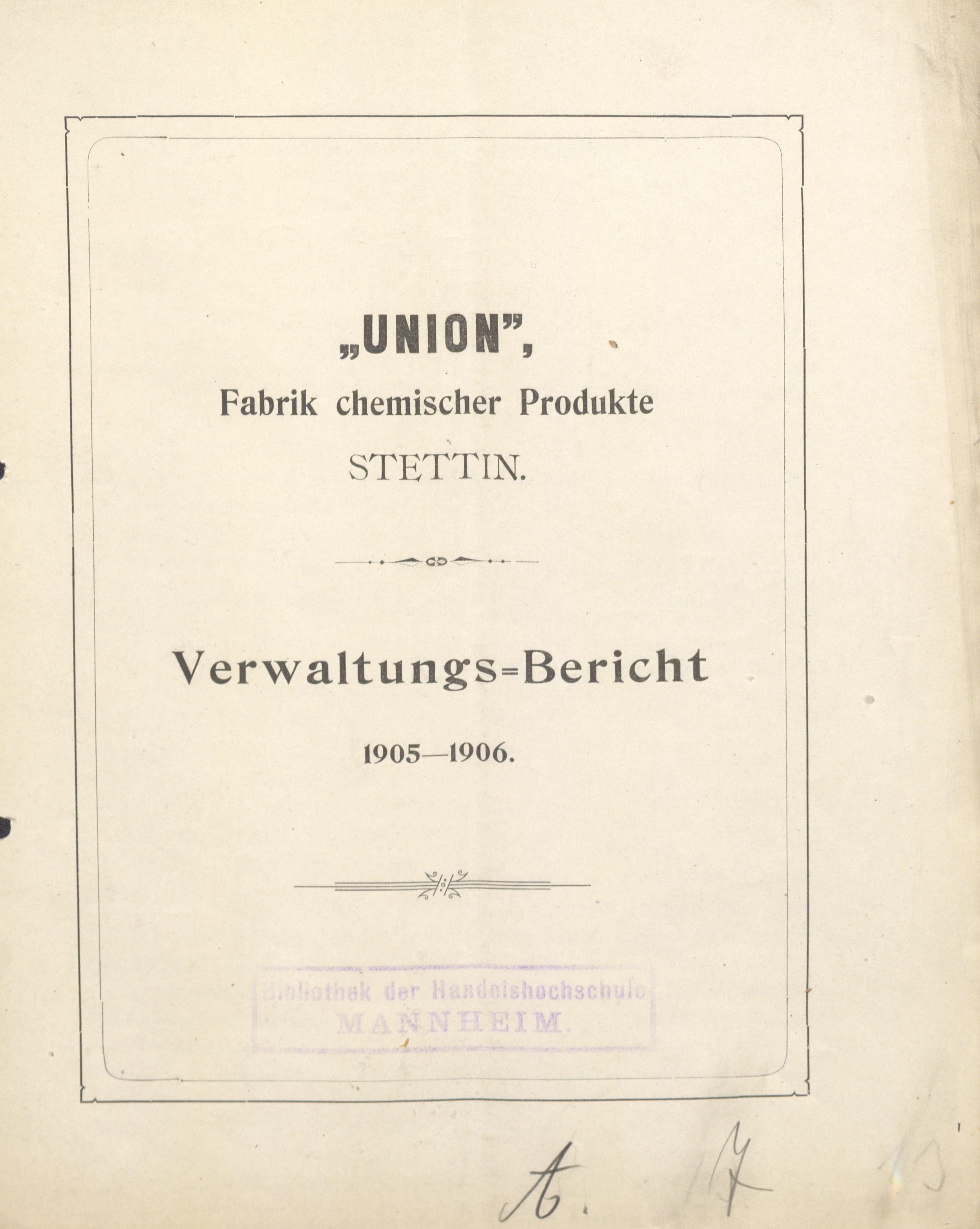 - Verwaltungs-Bericht der Union, Fabrik Chemischer Producte