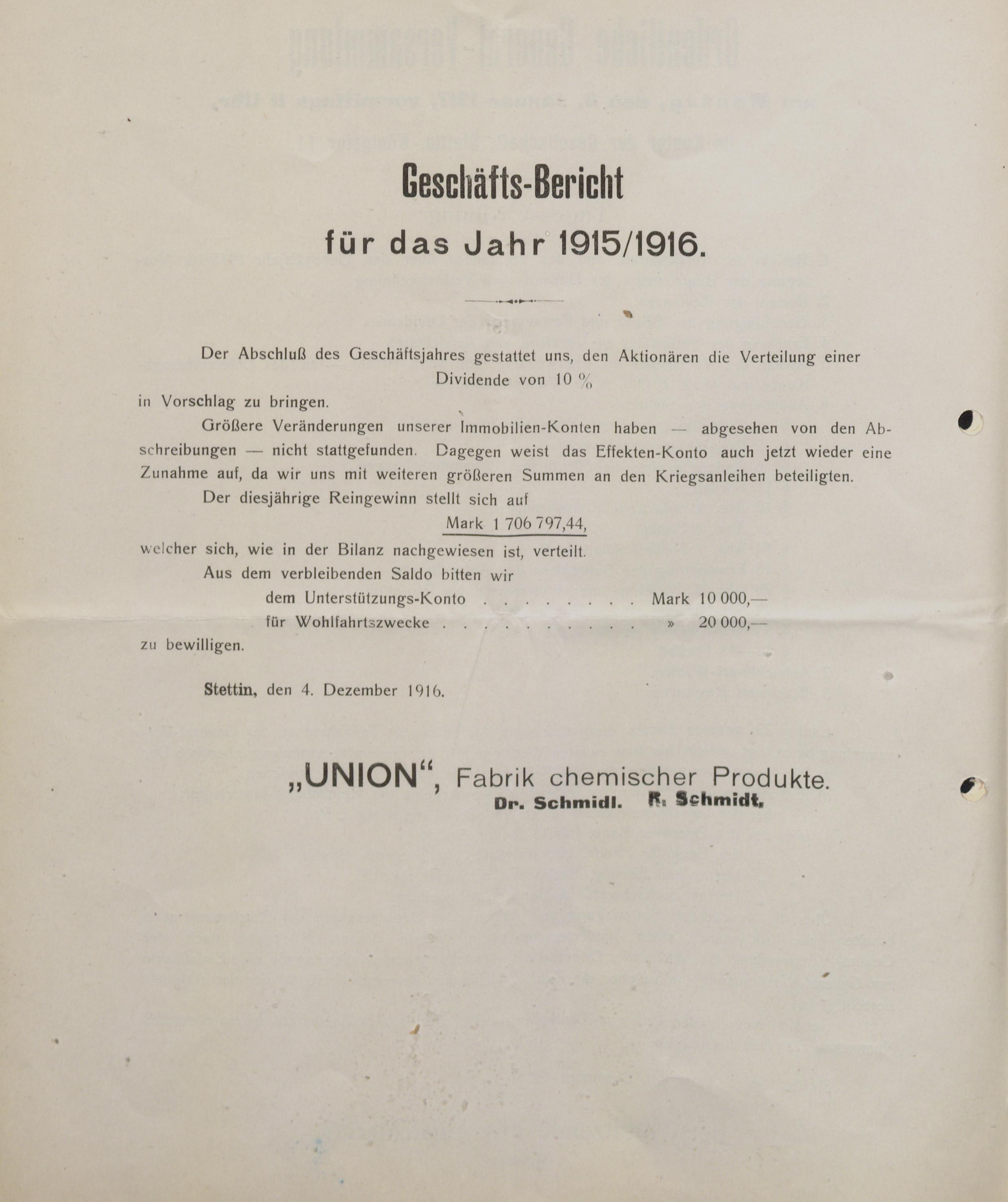 - Verwaltungs-Bericht der Union, Fabrik Chemischer Producte