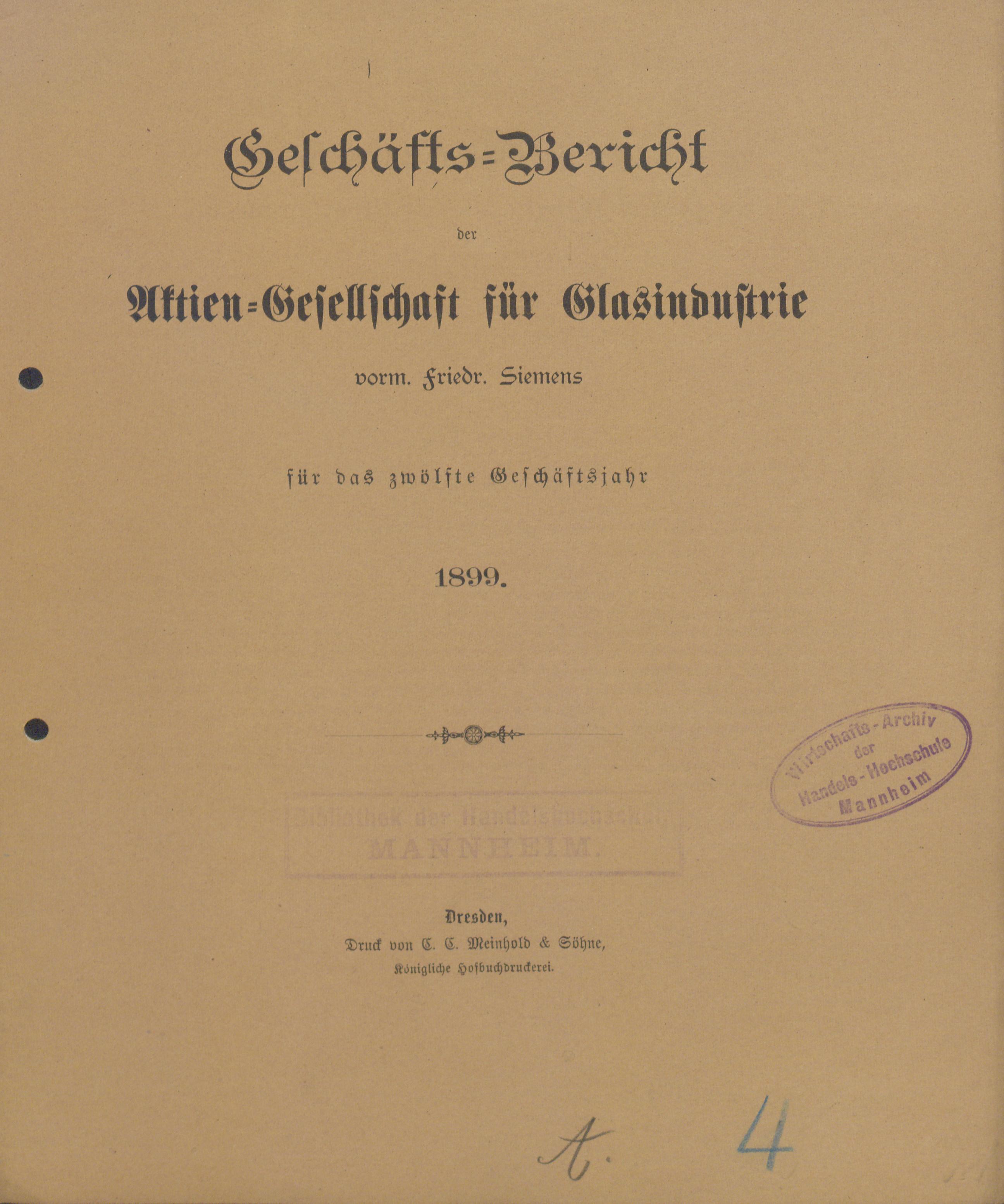 - Geschäfts-Bericht der Aktien-Gesellschaft für Glasindustrie vorm. Friedr. Siemens