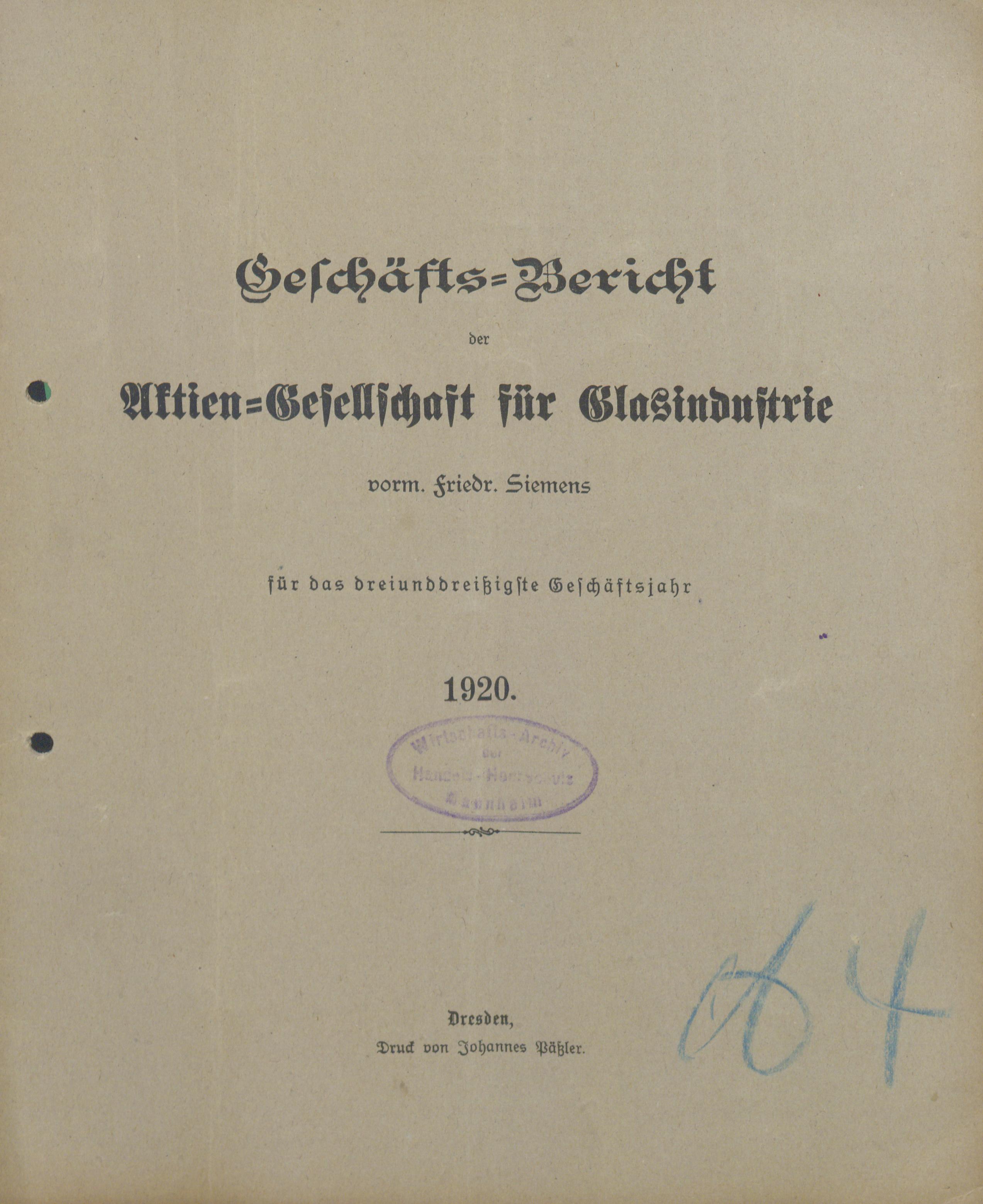 - Geschäfts-Bericht der Aktien-Gesellschaft für Glasindustrie vorm. Friedr. Siemens