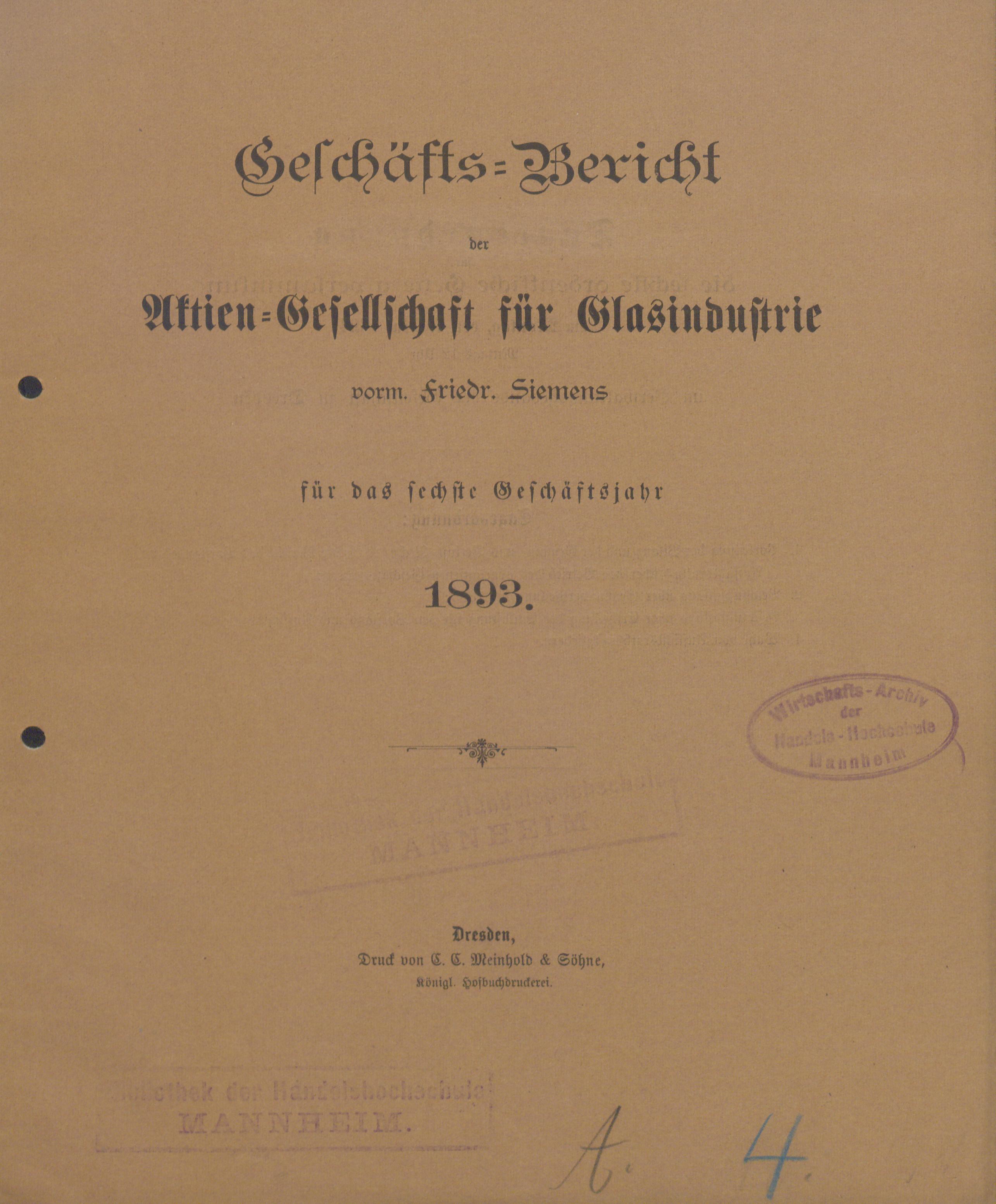 - Geschäfts-Bericht der Aktien-Gesellschaft für Glasindustrie vorm. Friedr. Siemens