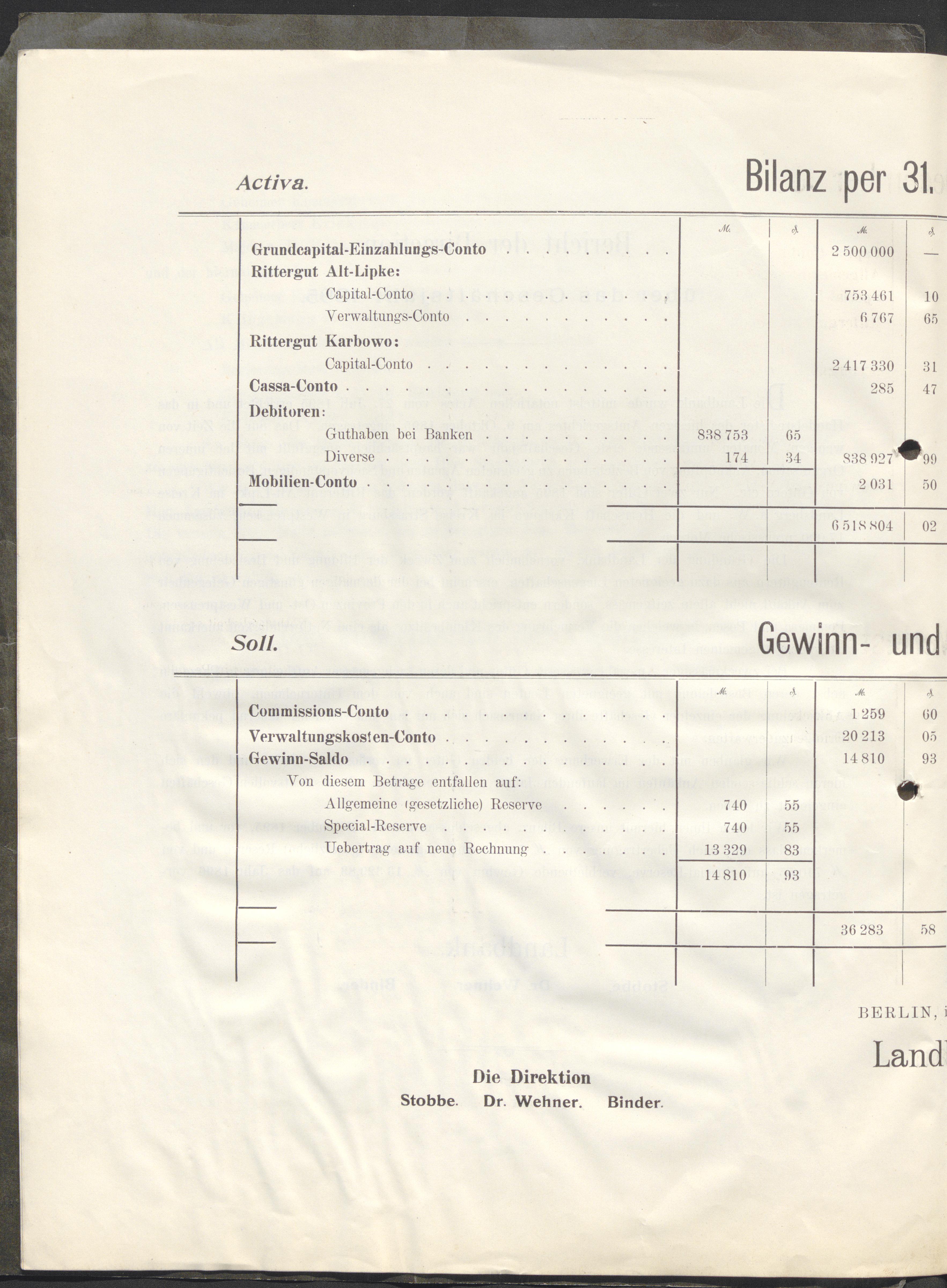 Landbank in Berlin Ordentliche Generalversammlung zu Berlin am ..1895