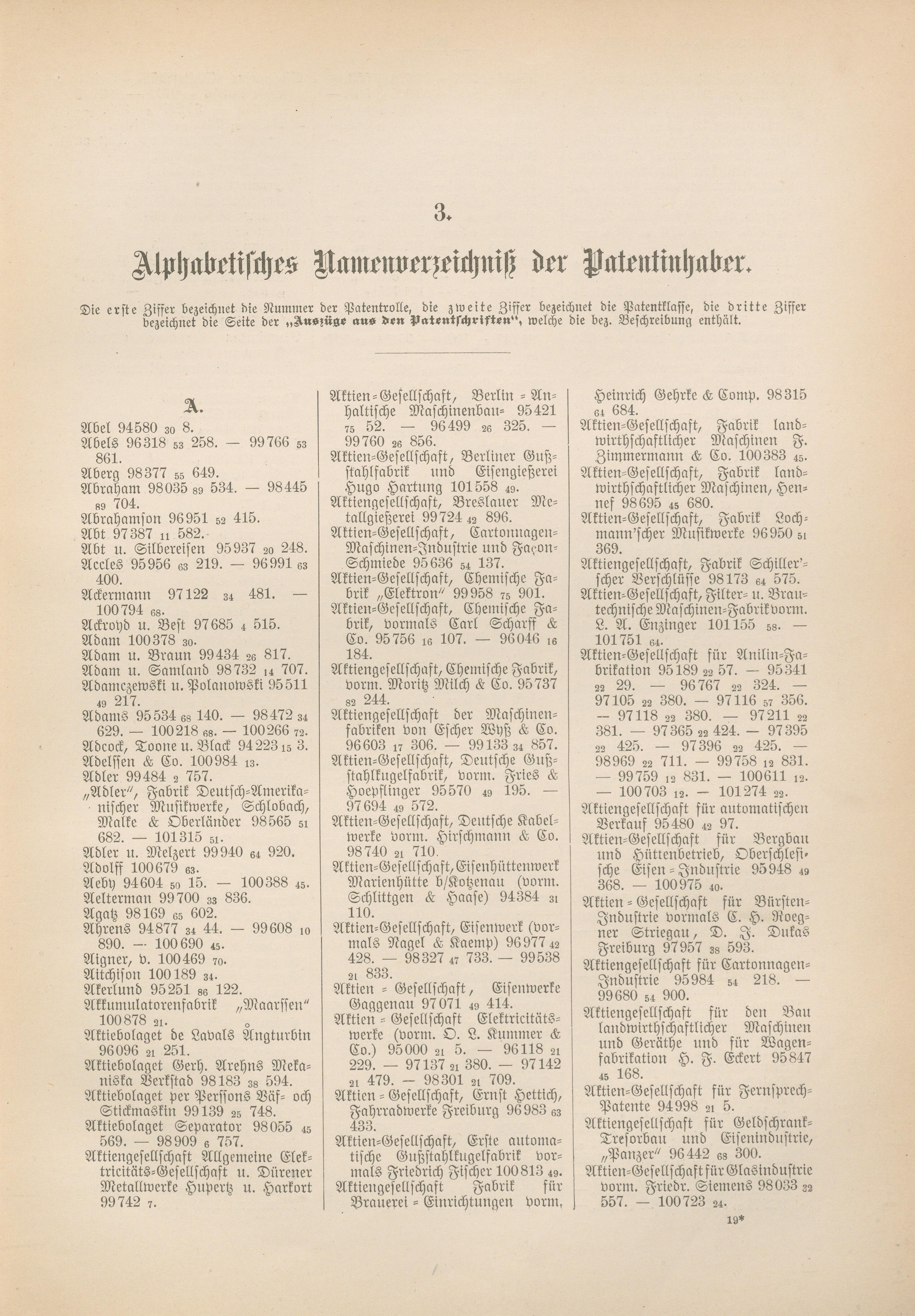 3. Alphabetisches Namenverzeichniß der Patentinhaber.