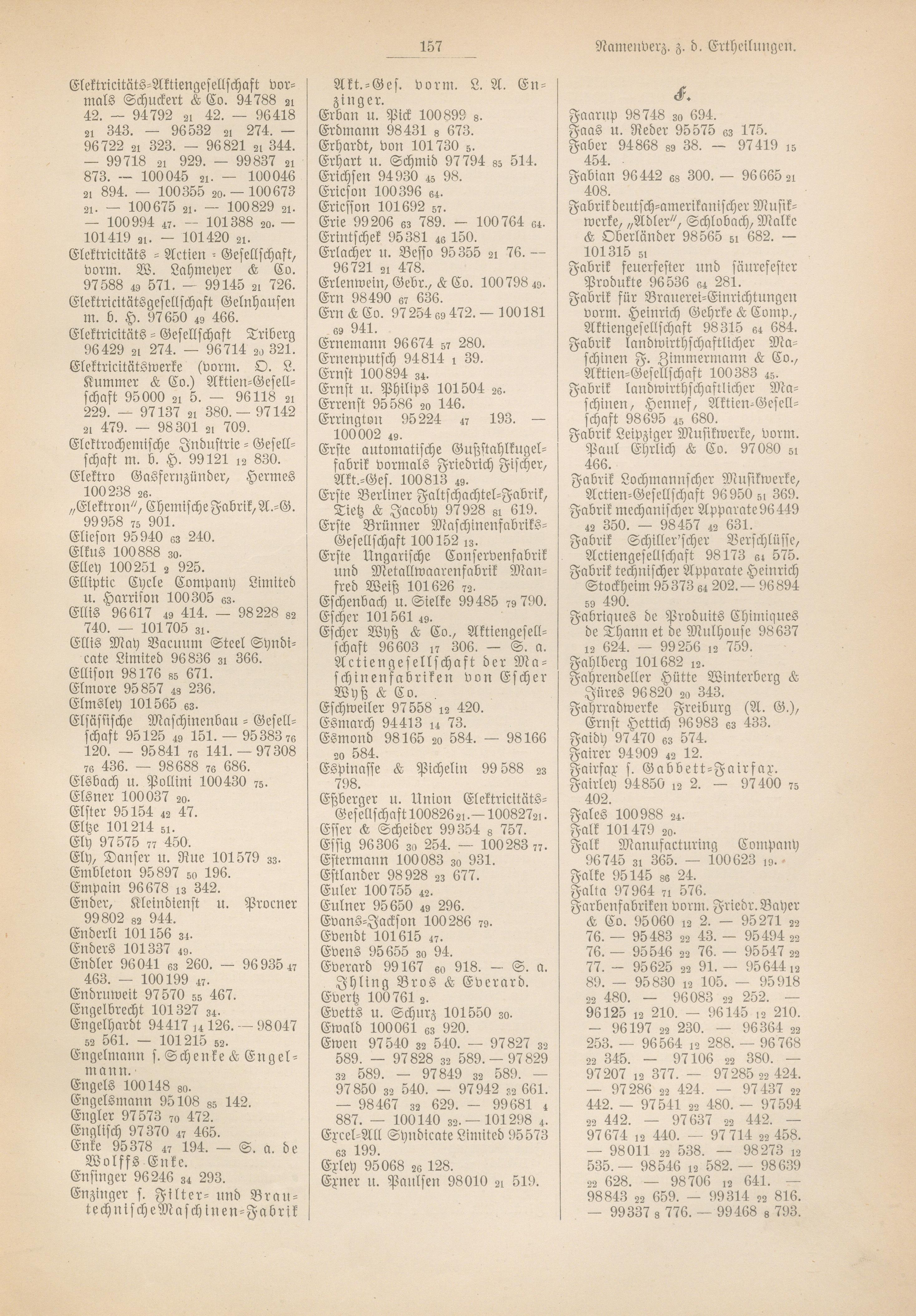 - [Abschnitt] 3. Alphabetisches Namenverzeichniß der Patentinhaber. 147