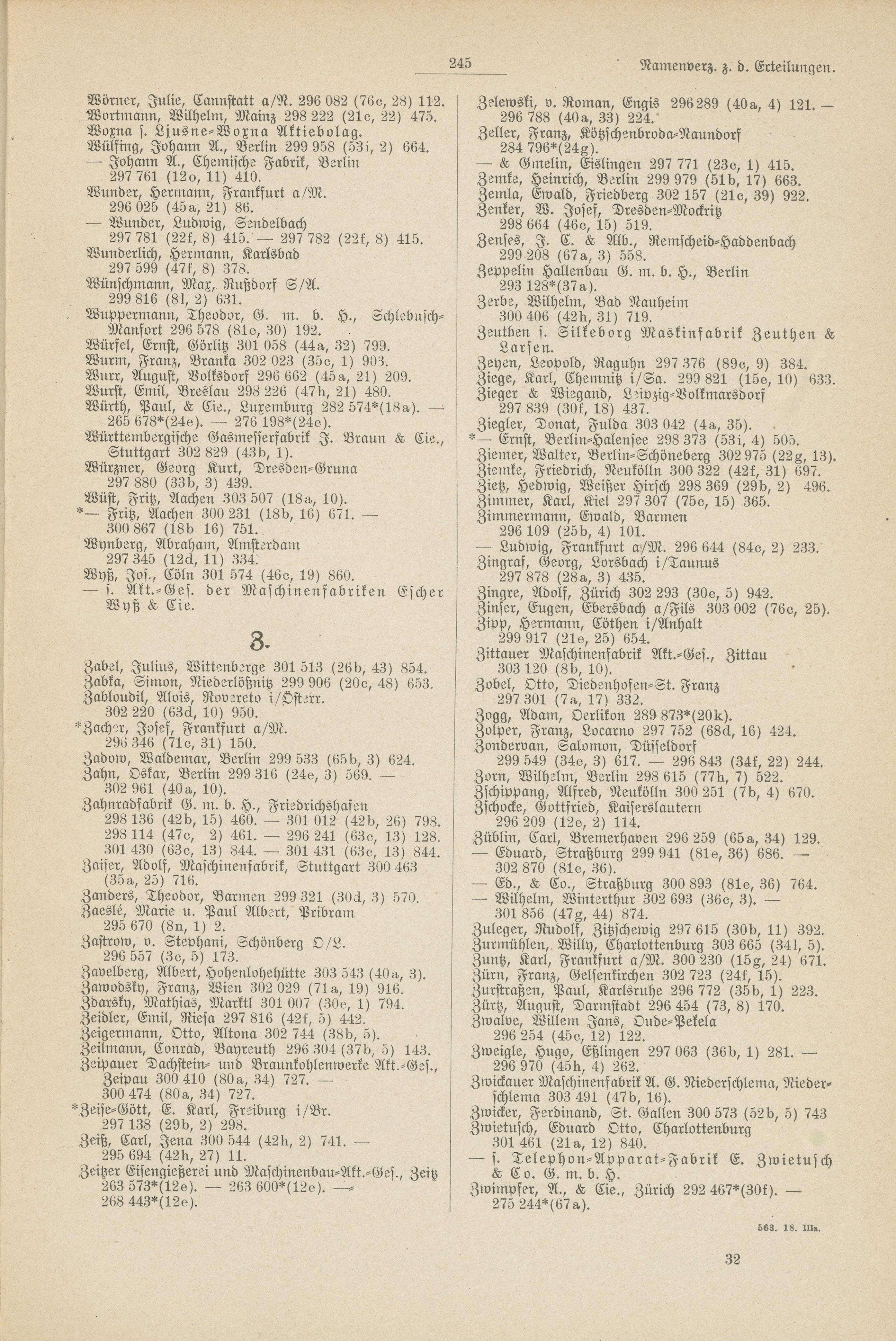 - [Abschnitt] 3. Namenverzeichnis der Patentinhaber. 191