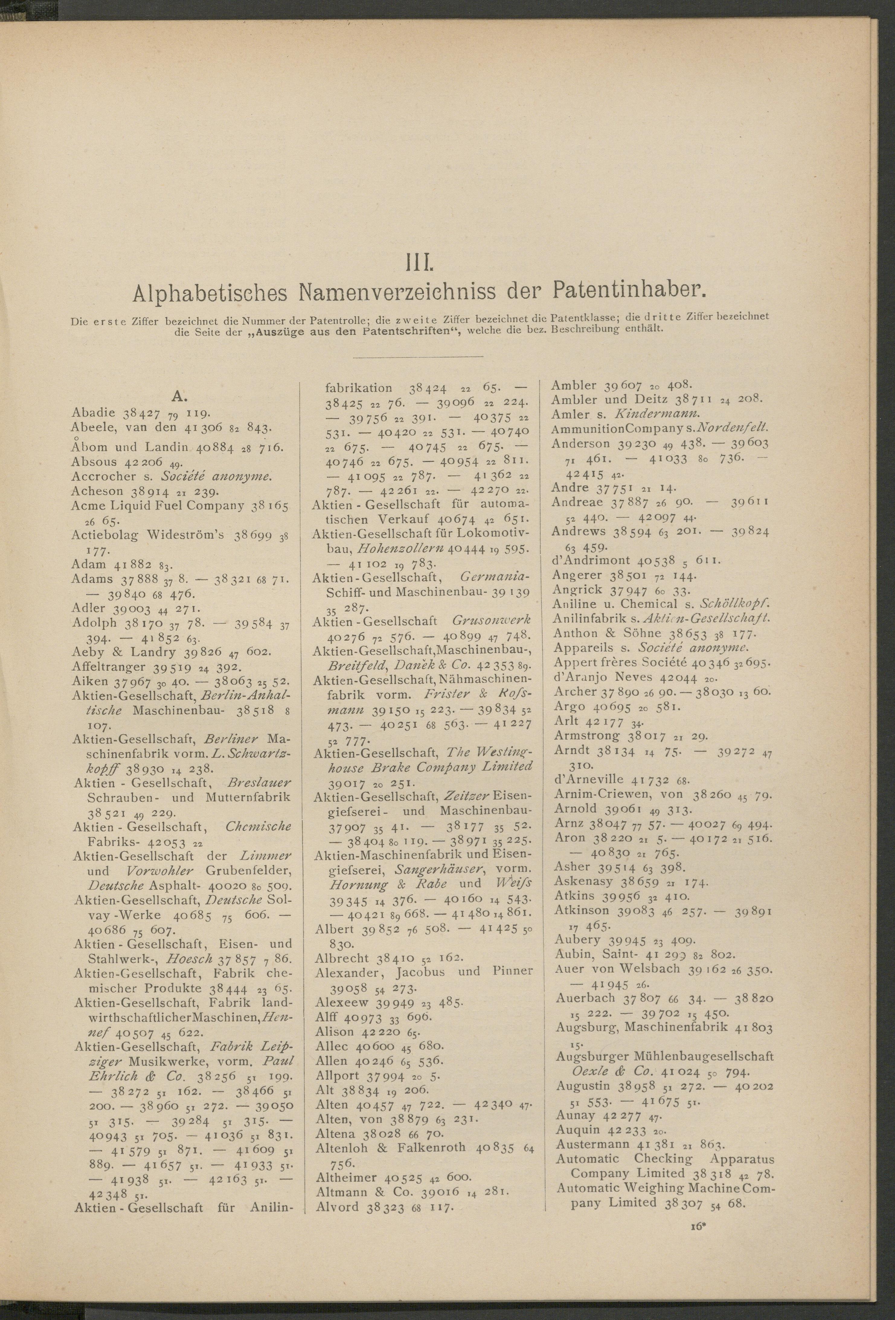 - III. Alphabetisches Namenverzeichniss der Patentinhaber.