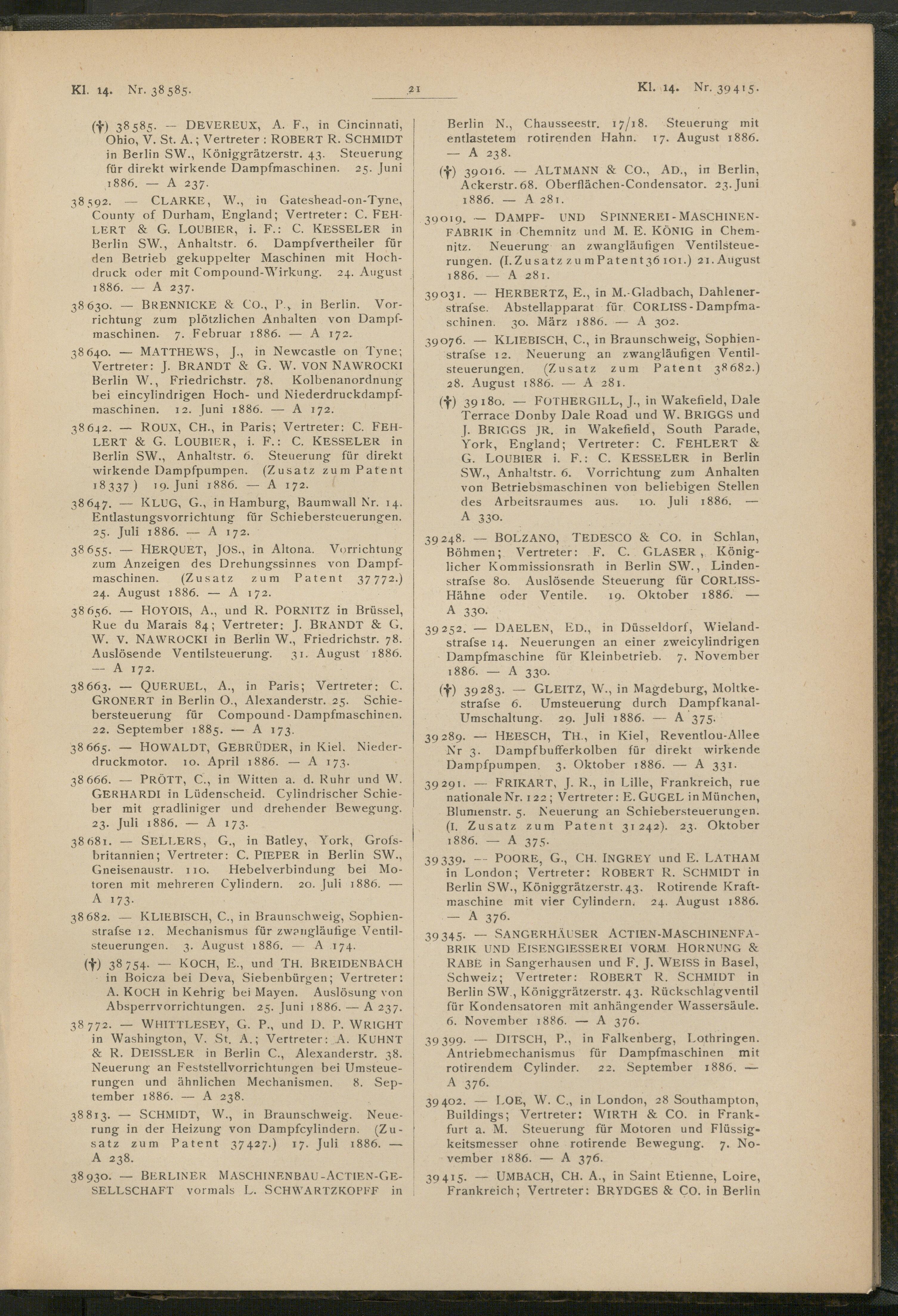 - II. Systematische Übersicht der vom 1. Januar bis zum 31. Dezember 1887 ertheilten Patente: P. R. 38570 - 42451.