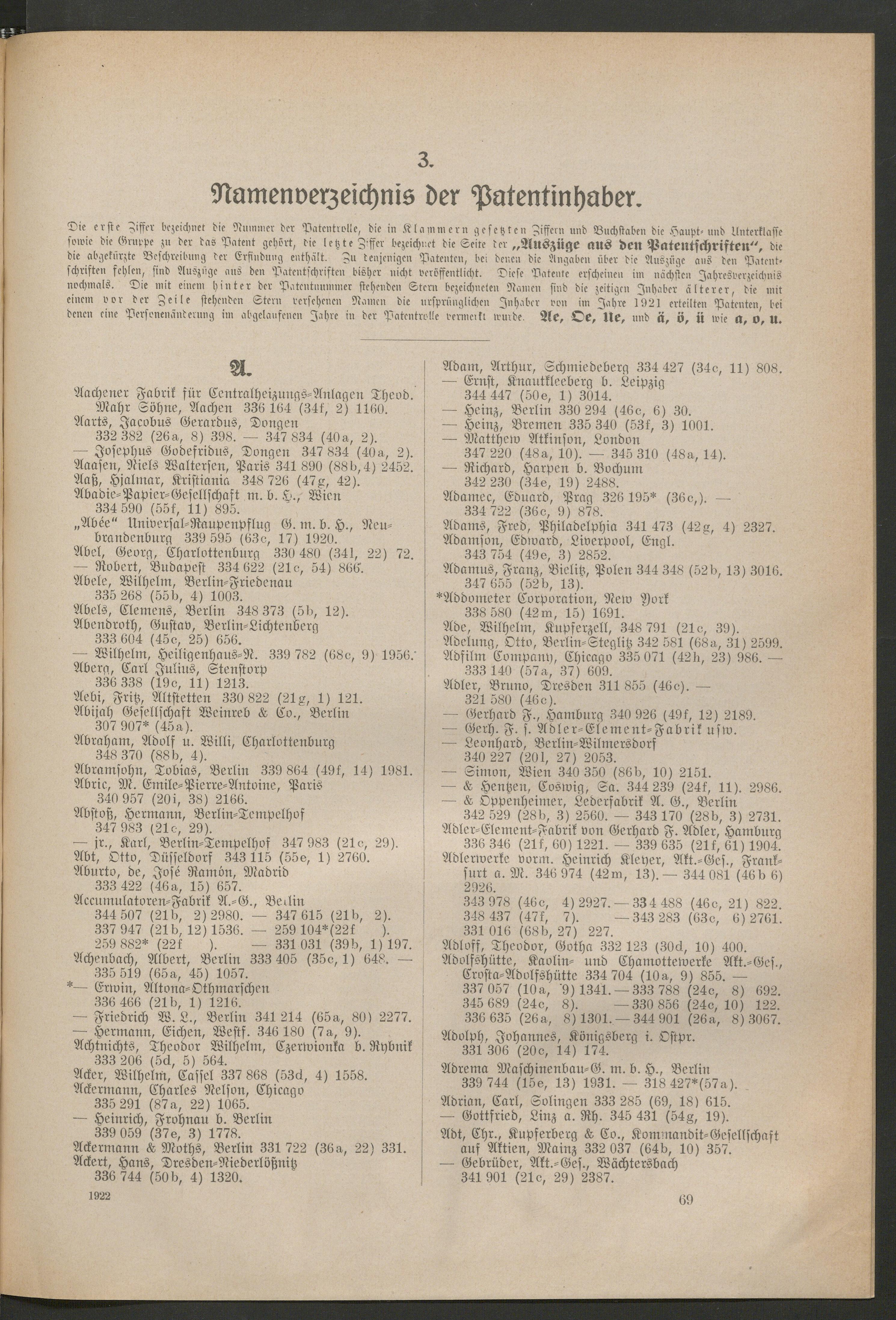 - 3. Namenverzeichnis der Patentinhaber.