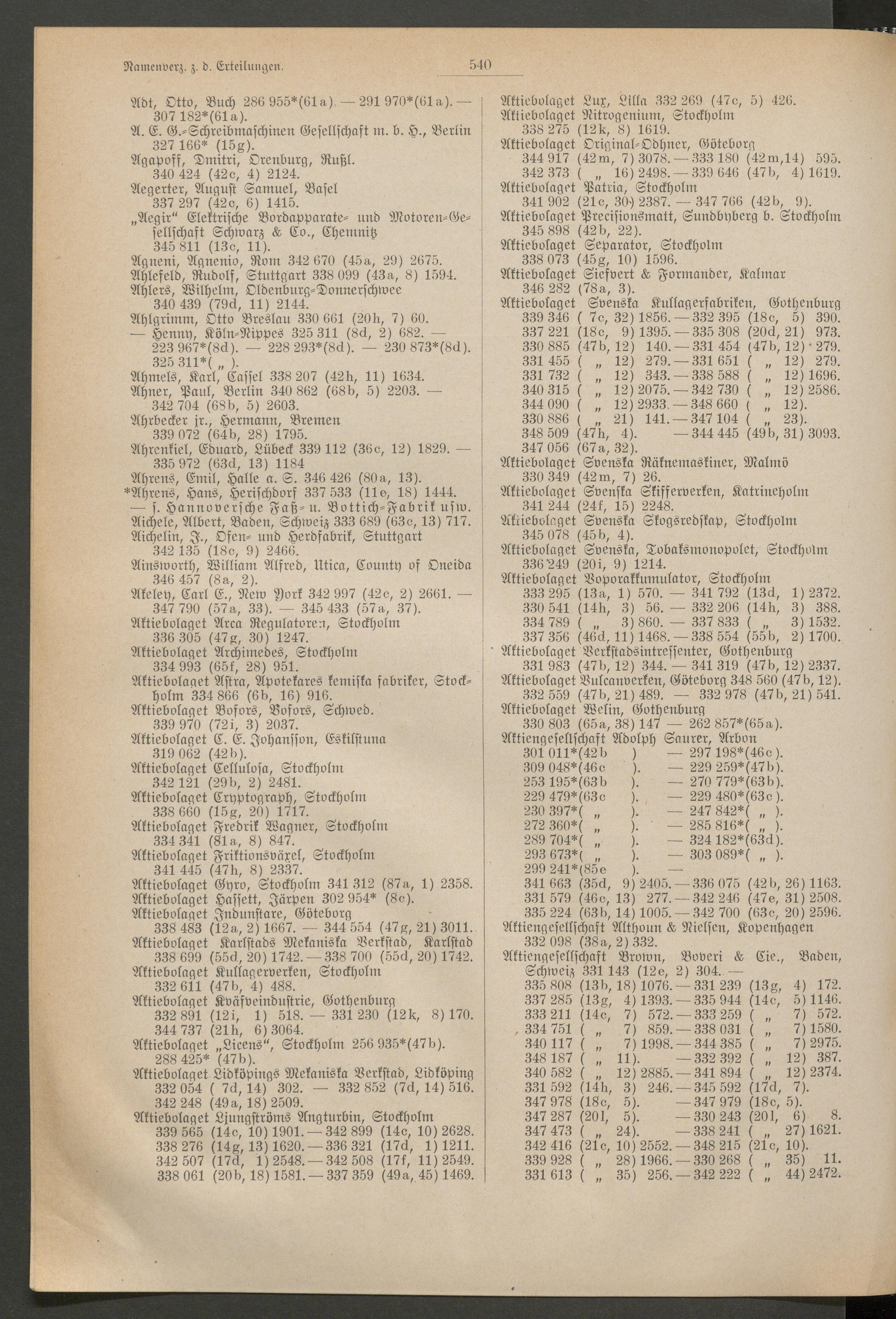 - [Abschnitt] 3. Namenverzeichnis der Patentinhaber. 539