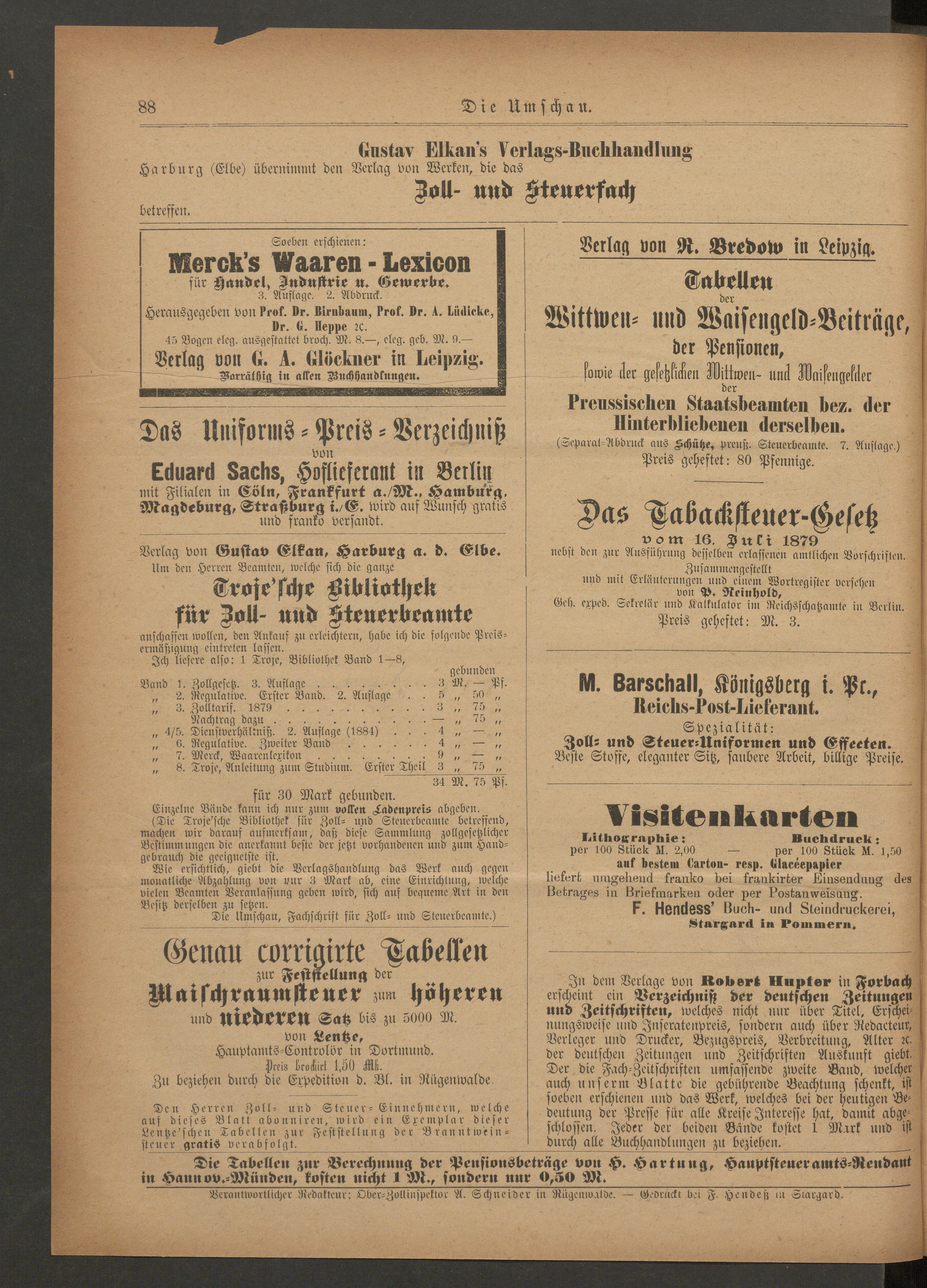 Die Umschau auf dem Gebiete des Zoll- und Steuerwesens